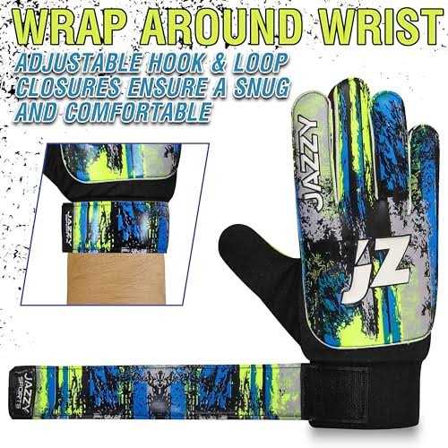 Jazzy Sports Soccer Goalkeeper Gloves for Kids Boys Children Youth Funky Football Goalie Gloves Anti Slip 4mm Latex Palm with Strong Grip & Doub