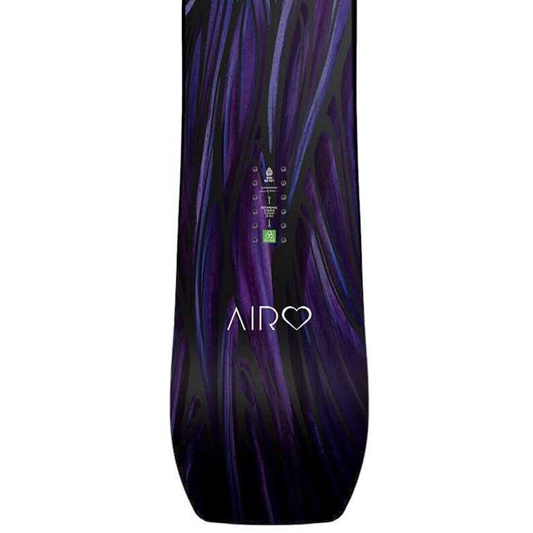 The completely redesigned Jones Airheart 2.0 is a hard charging directional twin built for expert all-mountain riders who like to carve turns and catch air. The Airheart is one-of-a-kind in the Jones women’s line thanks to its FULL CAMBER profile. Tip-to-tail camber matched with a directional twin shape delivers phenomenal power and stability edging on steeps and stomping tricks. This beauty is built to rip in mixed conditions and features a 3D Contour Base 2.0, Triax Fiberglass, Carbon/Innegra Reinforcement, an ECO-Plastic topsheet, and Traction Tech 3.5 edges. The 3D Contour Base starts after the contact point and helps eliminate edge catch and improve turn fluidity while the Triax fiberglass and Carbon Innegra layer under the Eco-Plastic topsheet suck up board chatter and offer supreme pop and lightning fast response. To reduce swing weight and lighten the overall board weight, the Airheart has Koroyd in the nose of the woodcore.