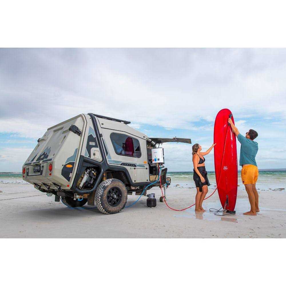 Wherever you can take an LPG bottle, you can take the HOTTAP. It’s the world’s smallest water heater in its class. And enjoying a HOTTAP shower is as easy as flipping a switch. Meet HOTTAP V2 Built to home standards, HOTTAP features class-leading specs throughout. It’s actually a real, hot shower – with over 15h run time on a single gas tank. Even in winter, HOTTAP’s 27,000-BTU burner will give you a steaming hot shower at the flick of a switch. And with up to 6 litres per minute of flow, it’ll get through any head of hair. Use it your way. The new HOTTAP Comes with a modular showerhead that can be used handheld or turned into a ceiling-mounted shower with the switch on the wall. Simply flick the switch and the hot water starts flowing. It’s also got a faucet attachment for use with a sink, included in your Nomad Kit. Taps into any water source Use your HOTTAP with a jerry can or throw the sturdy two-stage water filter into the nearest creek or lake and pump water up to 30m to your campsite. Two-Stage Water Filter The water intake features a two-stage filter that will remove everything but the very finest sediments, and it’s sturdy enough to be thrown into shallow rivers and creeks. What’s more, it’s easy to clean. No tools required, simply untwist the cover and pull apart, then flush out with water before putting back together. Long Distance Feeds The powerful pump self-primes to 1.8m and can push water up to 30m up an incline. Now you will finally be able to truly connect to nature. The pump is rated to IPX3, so you can leave it out in the rain, hail and shine. And don’t worry if there’s a limited water supply – the pump won’t be damaged by running dry. The new HOTTAP Comes with a modular showerhead that can be used handheld or turned into a ceiling-mounted shower with the switch on the wall. The powerful pump self-primes to 1.8m and can push water up to 30m up an incline. Now you will finally be able to truly connect to nature.