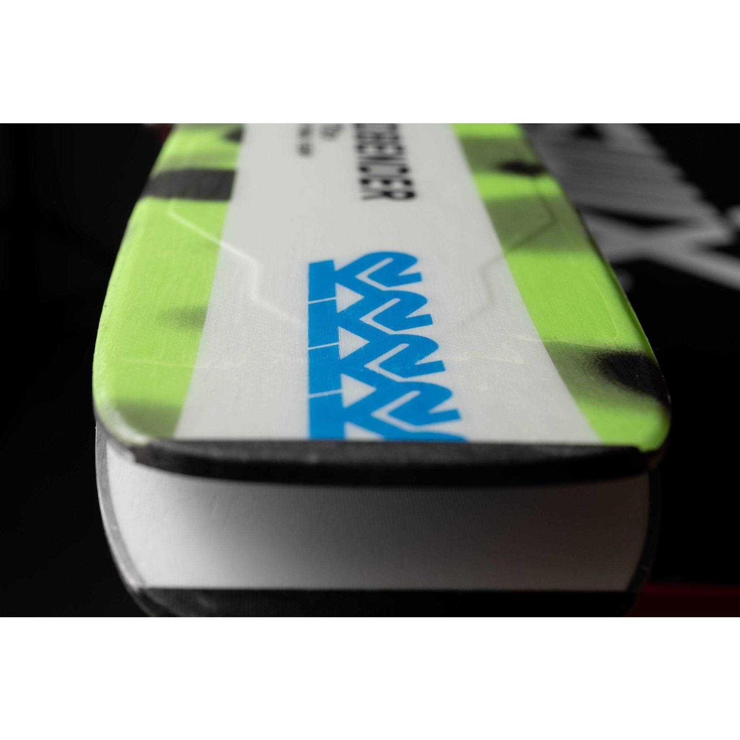 The Mindbender 108 Ti is a men’s freeride ski from the American brand K2. The Mindbender range accounts for K2’s freeride products. The spirit of the range is to offer freeride skis with a fairly alpine temperament, with reasonable tail rockers to give you maximum stability and power on hard and soft snow. The Mindbender 108 Ti is aimed at skiers of a good level who want a ski that is stiff, responsive and powerful enough to push in all situations and have fun at high speed! To ensure this, K2 has developed new technologies to provide more dynamism, torsional stiffness skateboarders, musicians a more playful ski than before. This version, with its 108mm wide waist, is dedicated to freeride-oriented use, whether for gliding through powder, or for sending it down packed snow on steep slopes. It is easy to use on slopes, but prefers wide open spaces! The Titanal Y-Beam plate has been reworked this year, the Titanium is located on the front edges of the ski to give you excellent grip and a predictable ski ride. The intention behind this design is to give you a higher level of precision and better stability, thanks to the weight being distributed further away from the centre of the ski. The result is a ski that performs well and is comfortable on all types of snow. So, if you want to enjoy the whole area with an aggressive freeride ski that is stable and has a good kick in powder, the Mindbender 108 Ti is for you!