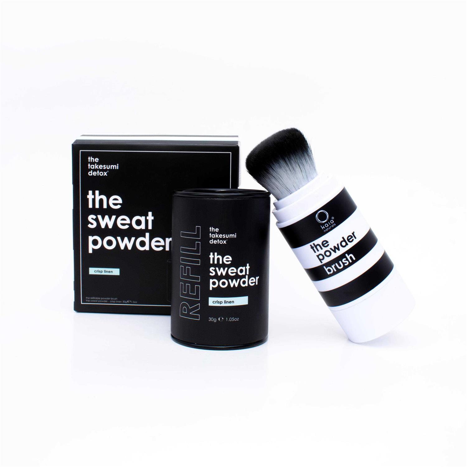 The Takesumi Detox The Sweat Powder Brush + Refill Set – Crisp Linen