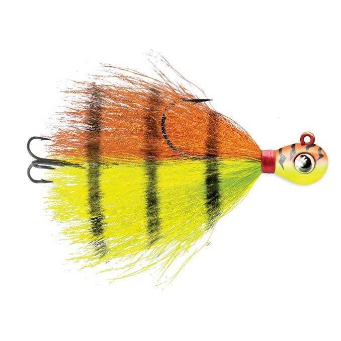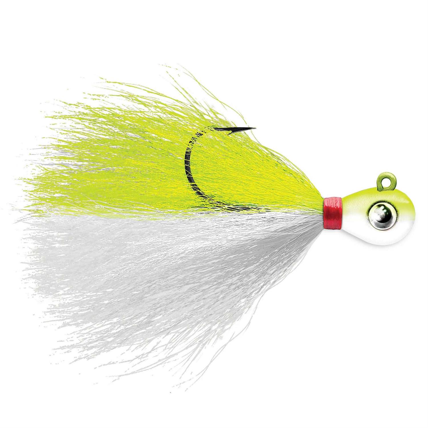 The Google Eye Hair Jig features our patented “Glass Rattle” Shockwave System designed to call fish in and trigger more bites. Hair Jigs glide while other jig combinations fall faster. Bucktail is easier for fish to see because it falls slower. Bucktail hair, unlike synthetic fibers, is tapered, thicker at one end and thinner at the other, producing a natural profile and realistic undulating action.