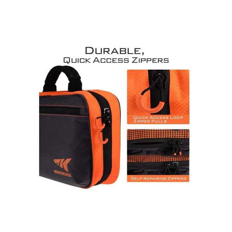Tough and Water Resistant – The KastKing Bait Boss lure bag is made from tough 420D rip-stop nylon material for exceptional long term performance and reliability. A hydrophobic coating repels moisture from the outside and a PVC layer on the inside provides extra protection to ensure your tackle is protected from the elements. Quick Bait Access – Six, giant zippered sleeves provide plenty of space to load up on all your favorite soft baits and the transparent material allows you to quickly find the perfect bait. The Bait Boss fishing lure bag includes (4) clear zippered sleeves and (2) clear zippered sleeves with double pockets. You’ll find additional zippered pockets inside the front and back covers, the (4) small and (2) large transparent internal zippered pockets offer space to stow weights, hooks, snaps, swivels. Versatile design – The KastKing Bait Boss tackle bag was designed with the flexibility to adapt to your fishing needs for both freshwater and saltwater. Customize your Bait Boss with soft baits, terminal tackle, tools, and leader line to target bass, crappie, pan fish, red fish, flounder, or just about any species. Perfect for a short trip to your local pond or a day of fishing on your buddy’s boat. (Product dimensions – 13.4” x 9” x 4”) Functional Design – Loop zipper pulls offer easy one finger operation for quick access to your baits and our self-healing zippers ensure your Bait Boss won’t become useless with a split zipper from an overloaded binder. An external zippered pocket and a mesh pocket are ideal for stashing a phone, leader line, pliers, line cutters, and other small tools. Soft/Durable Handle – Abrasion and weather resistant SBR handle wrap is very tough and soft enough to provide extra comfort when your Bait Boss is loaded to capacity. This will become your “Go To” soft plastics and travel bag for all your fishing adventures!