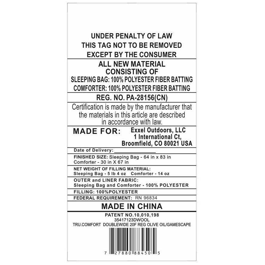 Kelty Tru.Comfort Doublewide 20 Sleeping Bag Olive Oil/Gamescape