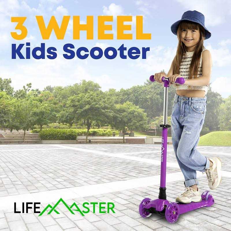 Lifemaster Kids Scooter – Children and Toddler 3 Wheel Kick Scooter – LED Wheel Lights Illuminate When Rolling– Adjustable Handle