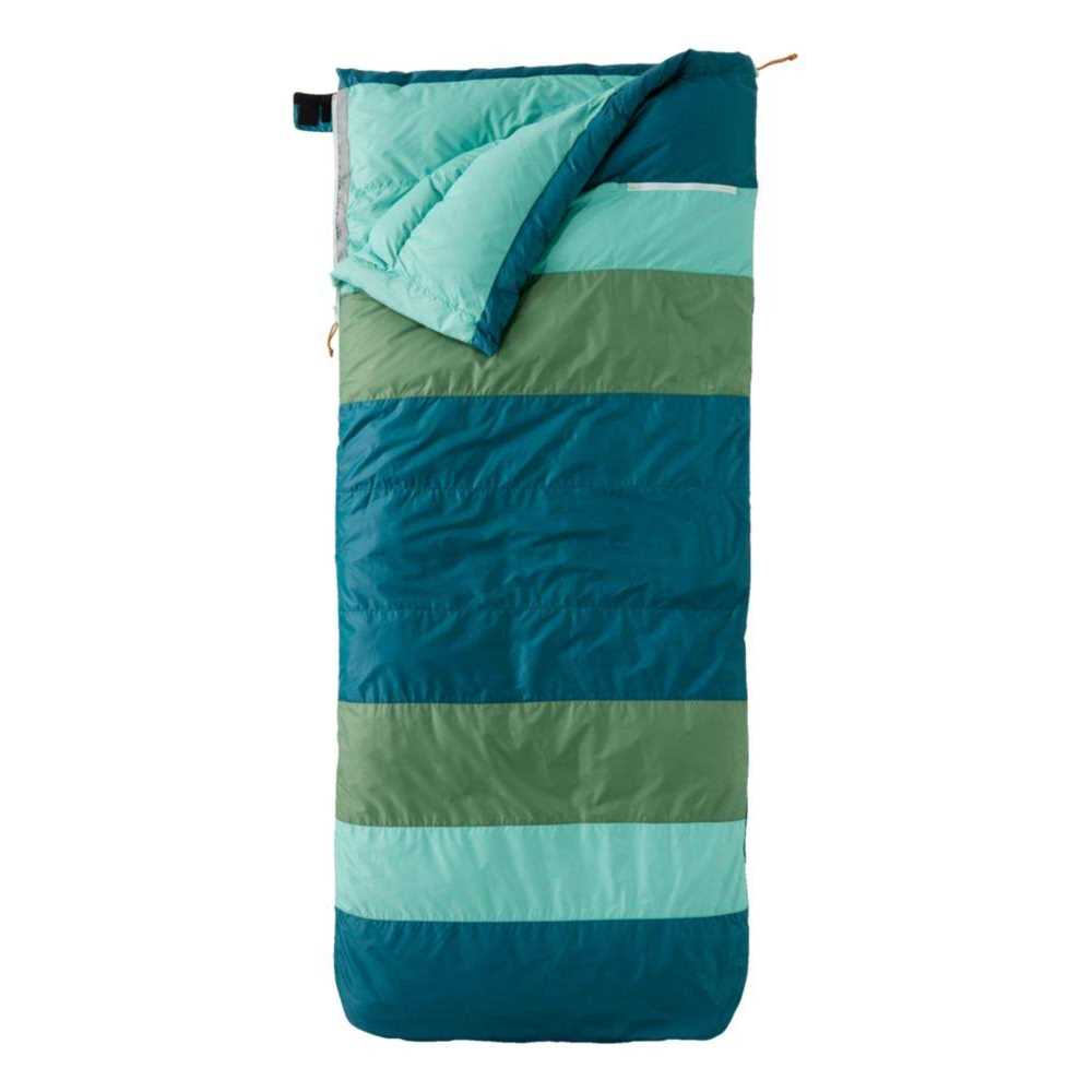 A super-comfortable roomy summer sleeping bag with soft lining warm insulation and a handy pocket that keeps a phone or headlamp close. It’s perfect for car camping the summer camp picnics outdoor concerts or just lounging at home. Handwash in shower or cold wash in large-capacity front-load machine on delicate. Gentle liquid detergent; rinse thoroughly. Line dry. Shell is made from 40-denier polyester mini ripstop fabric. Lined with super-soft 40-denier polyester. 70-denier nylon chest area for extra durability. Offset baffles keep insulation evenly distributed preventing the formation of cold spots. Filled with warm compressible and high-lofting 550-fill-power down insulation. Two-way locking main zipper lets you zip two bags together. A single bag can be zipped open to make a full-size blanket. Snap/zipper chest pocket for cellphone headlamp or other valuables. Roomy shape for a comfortable night’s sleep. Lightweight stuff sack for storage and transport. Drawcord lets you pull the bag snug around your chest. Imported.