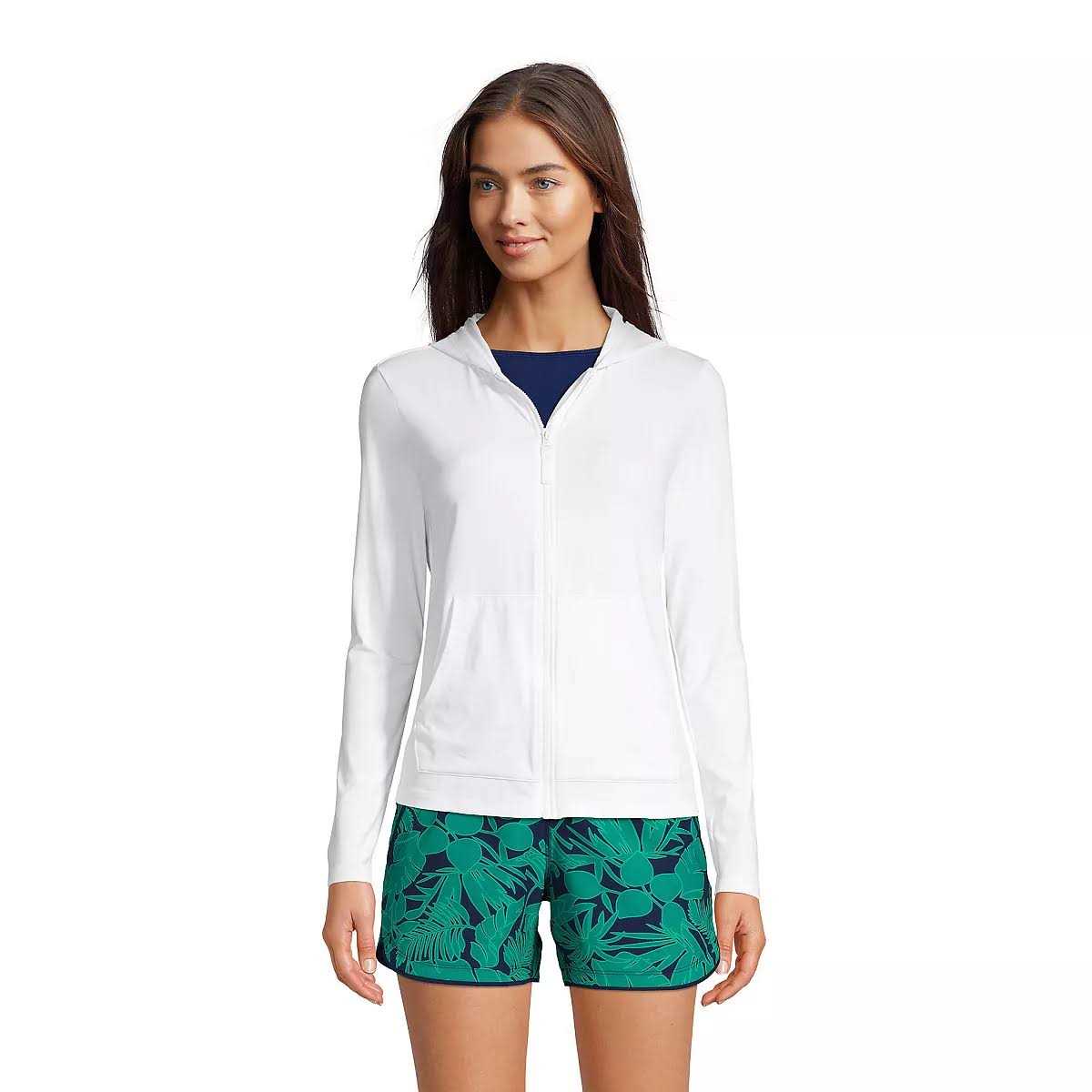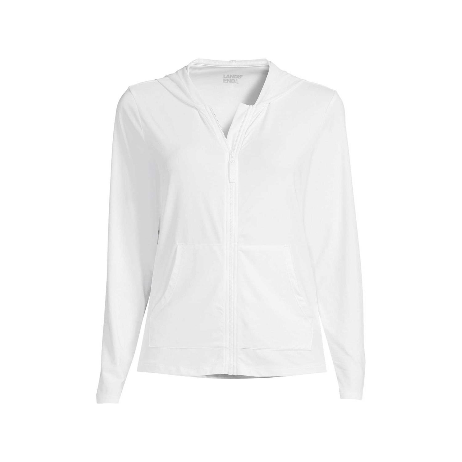 Lands’ End Women’s Hooded Full Zip Long Sleeve Rash Guard UPF 50 Cover-Up – Large – White