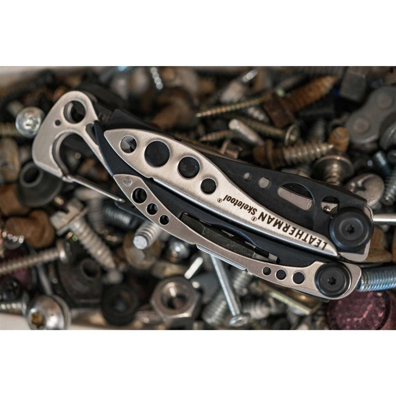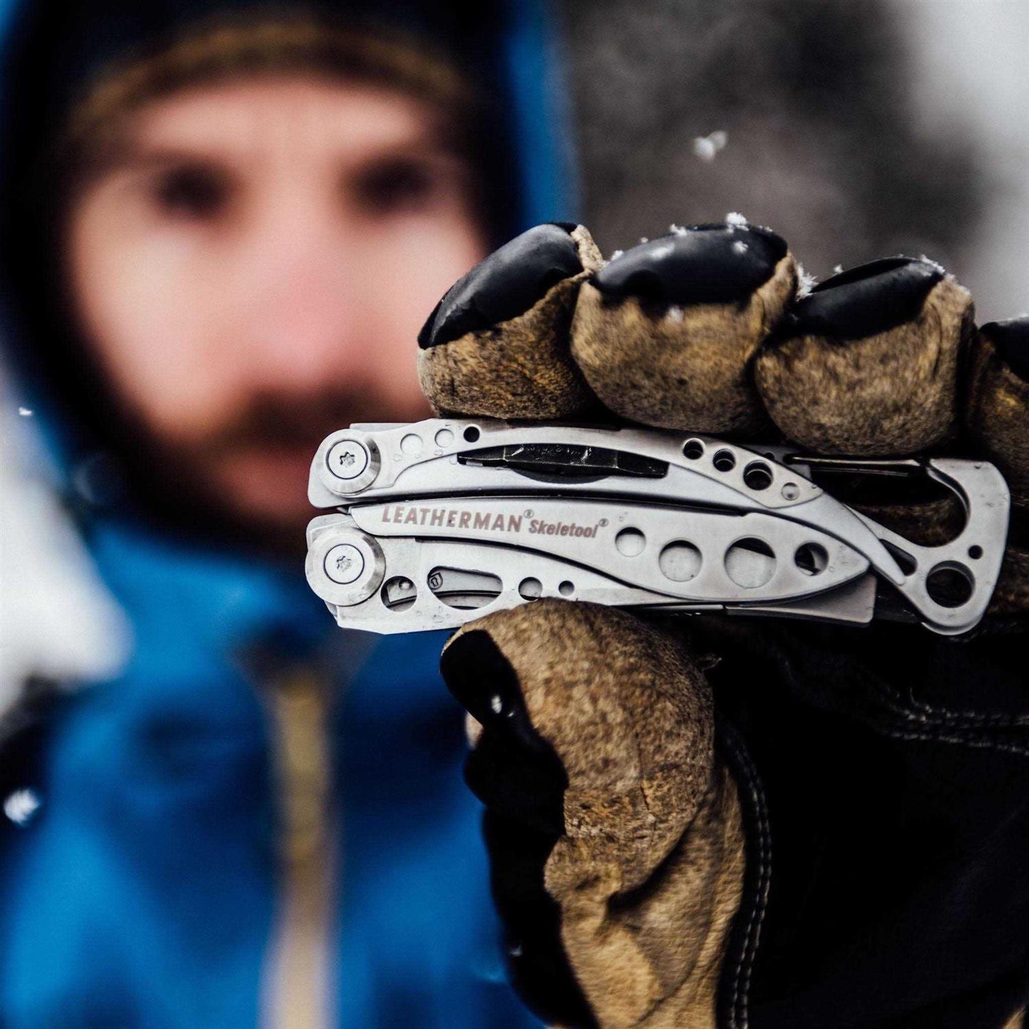 The Leatherman Skeletool Multi-Tool Denim, at a mere five ounces, it has a stainless steel blade, pliers, bit driver, removable pocket clip and carabiner/bottle opener. This incredibly light (5 oz) tool is perfect for the outdoor enthusiast who likes to travel light. Then again, if you just carry a pocket knife, you miss the additional tools that a traditional personal tool might offer. But, if you carry just a pocket tool, they tend to be heavier and contain more features than you generally need. The Skeletool is the perfect compromise between the two extremes. With a platform that contains everything you’ll ever need, the Skeletool easily clips on to a belt or backpack. It’s so light and functional that you won’t even need a sheath for it.