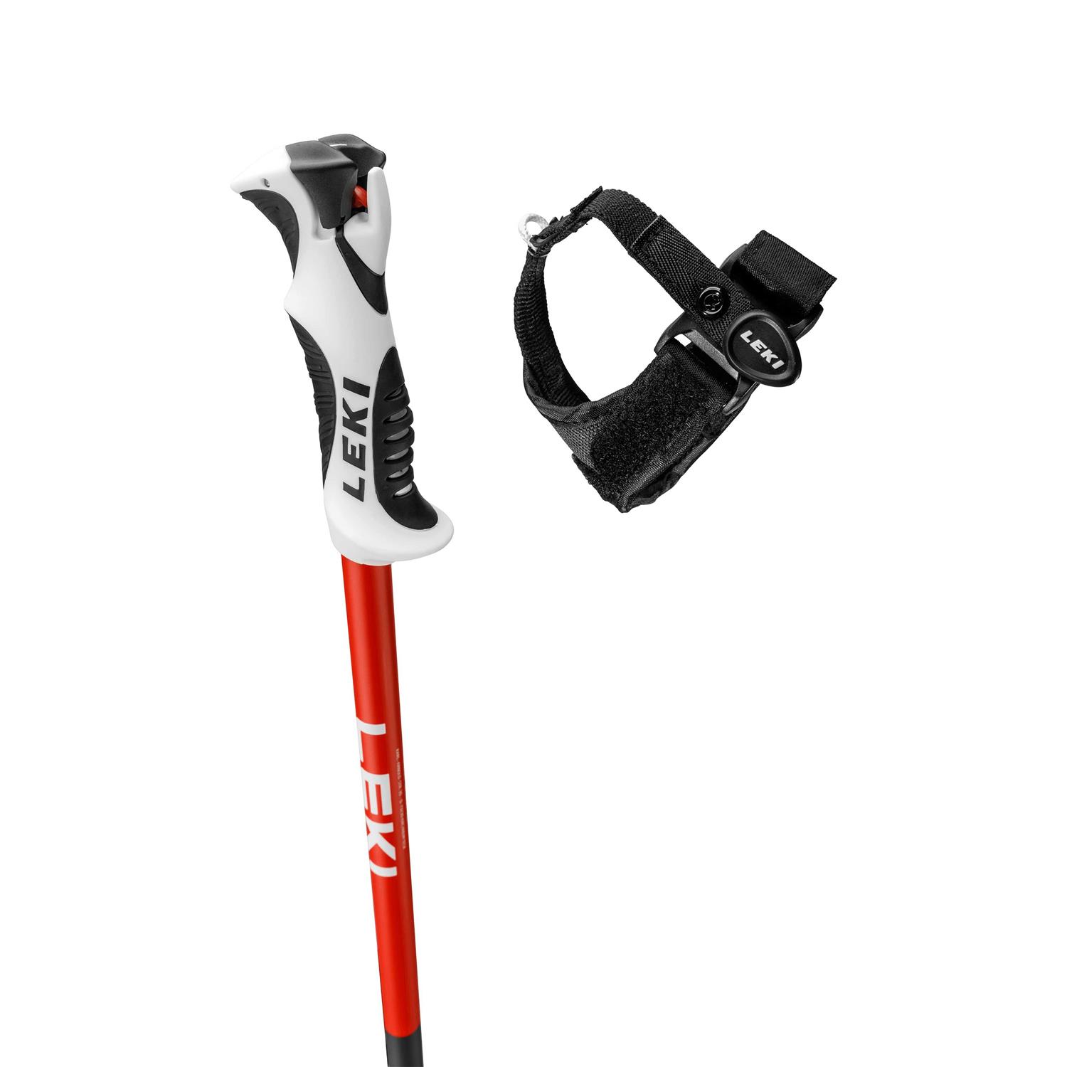 - High-end alpine ski poles with a continuously adjustable strap that releases in the event of a fall to ensure safety