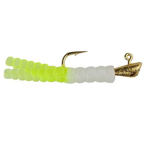Draw the attention of trout and more with the naturally flowing movement of the Leland Lures Trout Magnet Bait. The shad dart head and split-tail grub design offer a horizontal falling action. Weighs .016 oz. FEATURES Naturally flowing movement draws the attention of trout and other fish species Shad dart head and split-tail grub design offer a horizontal falling action Weighs .016 oz.