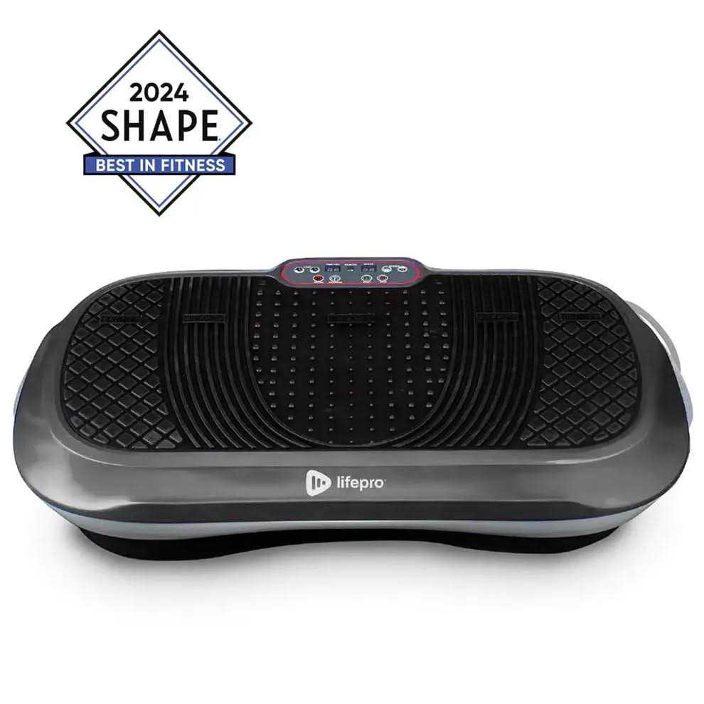 Improve workout results and soothe muscles with the Lifepro vibration plate exercise machine. It offers multiple health benefits such as the burning of body fat and cellulite as well as improving metabolism, bone strength and circulation. Muscles relax and stress on joints is reduced. This weight loss vibration machine has a range of speed settings to suit various fitness and skill levels and includes color-coded resistance bands and loop bands for arm exercises. A display screen and remote control provide user-friendly operation and quiet operation makes workout sessions peaceful. Texturing on the rubber mat makes footing secure. This piece of home training equipment is compact and features rolling wheels for easy portability and storage.