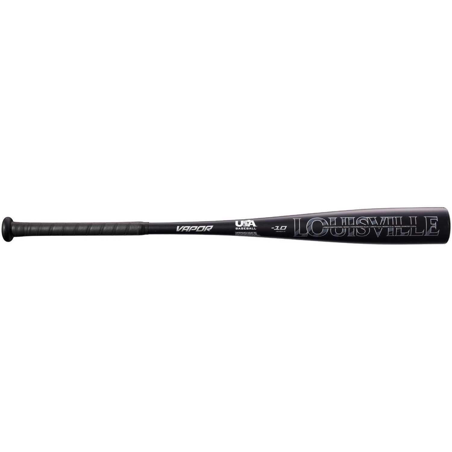 Engineered for consistent performance, the 2023 Vapor (-10) USA Baseball Bat from Louisville Slugger showcases your raw talent when you step into the batter’s box. With an extremely stiff one-piece construction and a redesigned Series 7 Alloy Barrel crafted for a lighter swing weight, the Vapor does damage without fuss or frills. This stiff, one-piece bat pairs its alloy barrel with a new HUB 1-Shot End Cap to optimize performance and maximize durability. WARNING: Most bats are made to standards of governing bodies, including any certifications shown on this bat. Still, a hitter can generate batted ball speeds that present a risk of serious injury or death to fielders, nearby players, coaches, umpires, and spectators. Be alert and aware of all batters, and use appropriate protective equipment at all times, on a baseball or softball field or near a batter.Manufacturing tolerances, performance considerations, and grip weight may cause variations from the listed weight/Mass Index.
