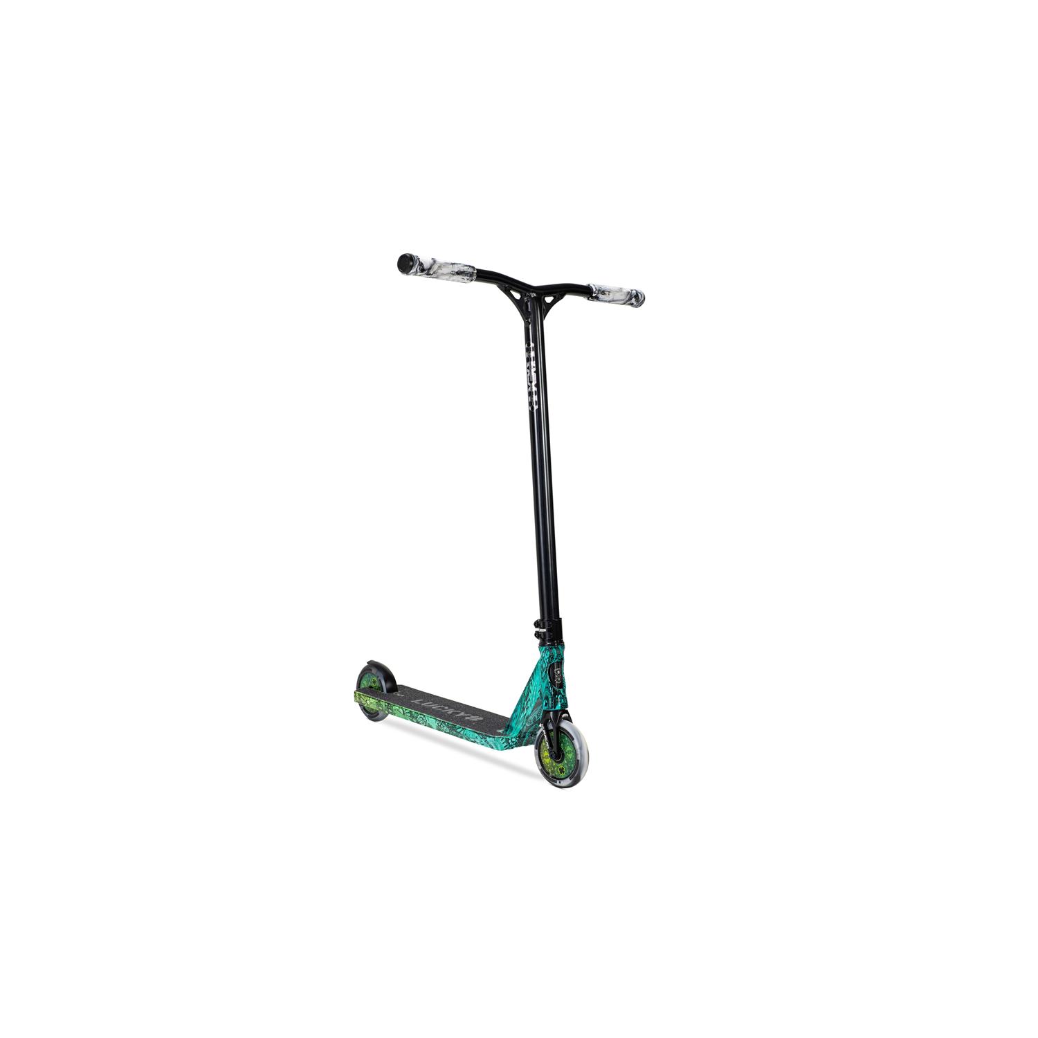 The 2024 Lucky Prospect Pro Scooter comes equipped with an all new Aluminum HexBar at 24.5 622mm Tall and 23.5 597mm Wide a Black Anodized IHC Huracan Fork and a 19.5 495mm Long and 4.8 122mm wide deck with an all new plated front end. Also new for 2022 are the 120mm Lunar Hollow Core Wheels. Weighing in at only 7lbs 3.1 kgs the PROSPECT is Luckys lightest out of the box complete pro scooter. Keeping with the much loved PROSPECT style and design this complete pro scooter stands out with rich anodizing and clean graphics designed by industry legend Ryan Upchurch. Take it straight from the box to the park and go BIG This scooter just might make you the next prospect for the Lucky team.