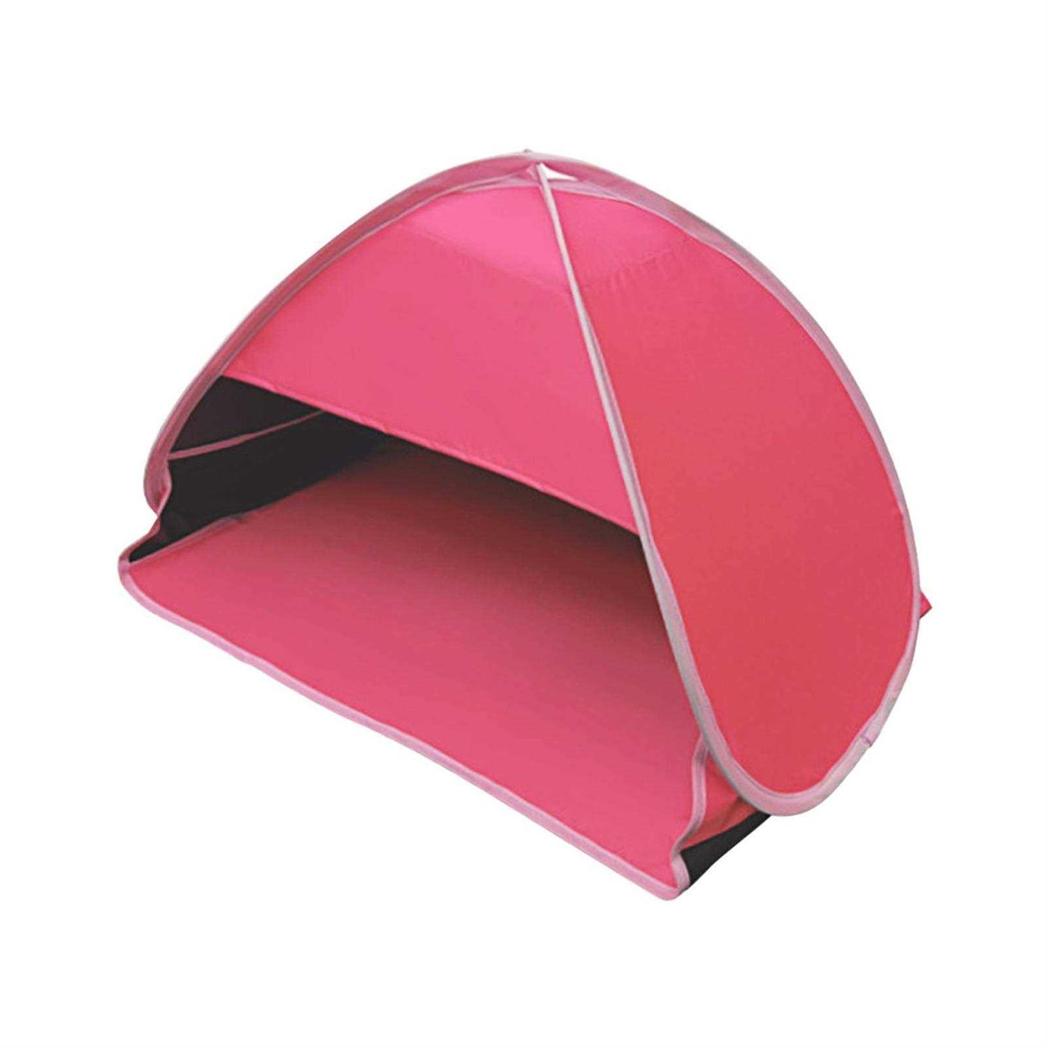 Material: Made from vinyl cloth, very durable and waterproof. Come with a small waterproof carrying bag and the ultra-lightweight construction allows this mini beach tent can be easy transportation with you to everywhere you go. Window Ventilation : Designed the mini head popping up tent with 360-degree windows ventilation for better dissipation of body heat and odor. Provides the most enjoyment of the beautiful beach scenery. Windproof and Sand-Proof: It will greatly blocking the sun and protect your eyes from the light directly. Prevent harmful sun rays from penetrating and harming your face. The beach sun shelter also features windproof and sand-proof. Provides most comfortable sunbathing on beach. Multifunctional: Lying on the beach with the sun shade shelter for a comfortable sunbathing. You can pour ice water into the pillow to keep your head cool. You can also use the sun protection shelter canopy as camping face shade, sun protection on deck c