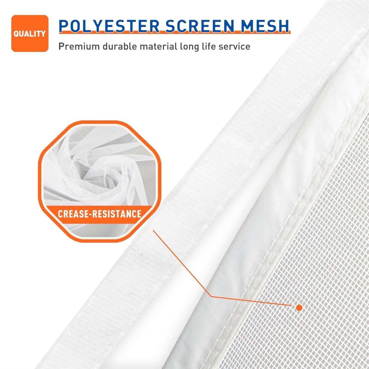Before purchasing, please carefully measure your door size (not include door frame part) and order that size. UPGRADED REINFORCED MAGNET – Powerful magnets with 35% enhanced performance are sewn right into the seams to offer you a great experience with hands-free opening and quietly automatic closing. BROAD VISION – The invisible door screens for keeping out the creatures can maximally let fresh air in and keep the field of vision when you look at or out since there are no more black seams in the middle blocking your vision. DURABLE POLYESTER MATERIAL – The magnetic screen door is made of upgraded polyester material which is superior than ordinary mesh. It also has excellent performance in wrinkle resistance and has high strength and great scratch resistance. EASY INSTALLATION – This magnetic mesh screen comes with full-frame hook tape, a pack of drawing pins, and an instruction manual. You can install it yourself without using tools by watching the installation instruction video on the product page. p Specification /b – Mesh material: Polyester – Left Opening – Color:White – Upgrade screen door mesh /b – 1. Wrapped four sides with better quality cloth, double sewing middle magnets wrap part. – 2. Choose upgraded thicker thread, shorten the needle pitch, more flat and firm. – 3. Longer strong magnets help better sealing. access easily, close quickly! – Unique side opening design: /b – Creative side opening design, broad your view, no more black lines(opening part) blocking your eyes. Maximize keep the scenery in front of your house, what’s important, it would be more convenient when you open the door with the side opening screen, the opening is closer to door handle. Free your hands to entry, as well as ensure your little baby and pet can easily to access. – Windproof Hook&loop hasp: /b – High quality Polyester material: /b – Compare to the previous nylon screen mesh, Polyester material is more durable than nylon, fireproof, good shape, it can withstand long time sunlight and wind. Heavy mesh construction, allows fresh air and sunshine into your home, perfect net for door, bring you a comfort life – /b br – Built-in strong longer magnets from Top to Bottom that make it AUTOMATICALLY OPEN AND CLOSE with no gaps. Heavy mesh construction with strong magnets, will never find a chance to get into your house. A successful door screen enables your lovely kids and pets can go in and out of your home as much as they