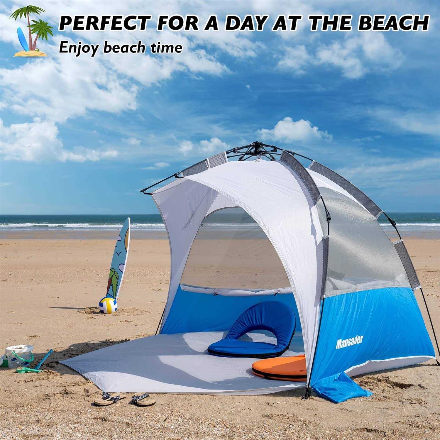 Mansader Beach Tent Pop Up Shade Instant Beach Tents Sun Shelter with UPF 50+ UV Protection