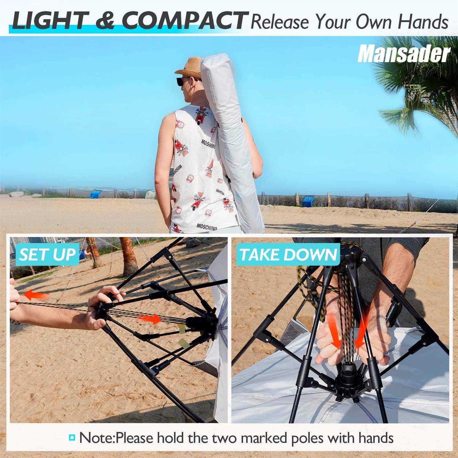 Mansader Beach Tent Pop Up Shade Instant Beach Tents Sun Shelter with UPF 50+ UV Protection