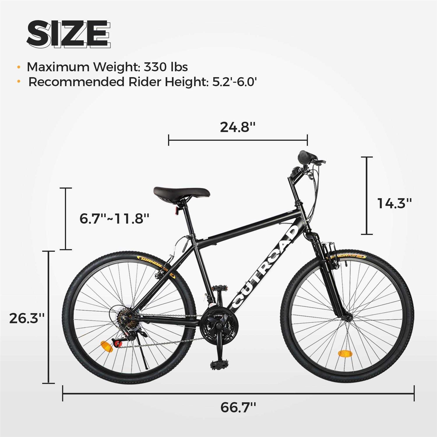 Versatile Performance: Built to tackle diverse terrain with ease, Marknig mountain bike effortlessly adapts to various road conditions, ensuring a smooth and enjoyable ride every time. Enhanced Durability: Featuring a reinforced frame, MarKnig mountain bike offers exceptional stability and durability, capable of withstanding rigorous outdoor adventures for years to come. Superior Traction: Equipped with rugged, anti-slip off-road tires, MarKnig mountain bike delivers outstanding grip and traction, providing confidence-inspiring control on challenging trails and terrain. Precision Shifting: With a 21-speed gearbox, MarKnig mountain bike offers seamless gear transitions, allowing riders to effortlessly navigate inclines and declines with precision and efficiency. Hassle-Free Assembly and Support: Designed for convenience, MarKnig mountain bike comes with 85% pre-assembly, enabling quick and easy setup.