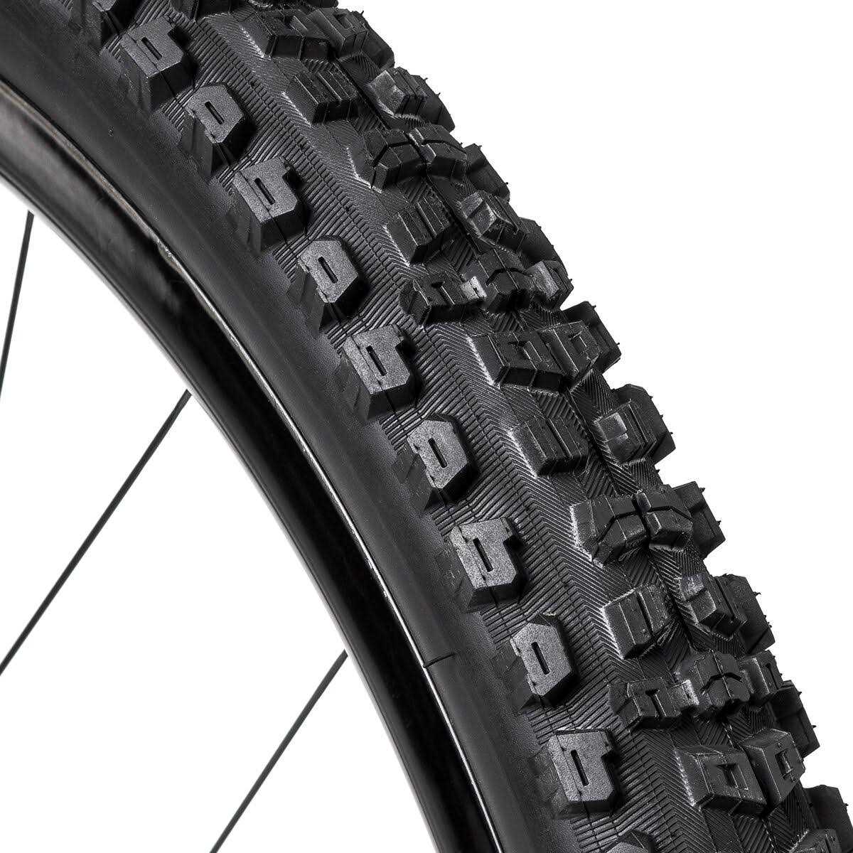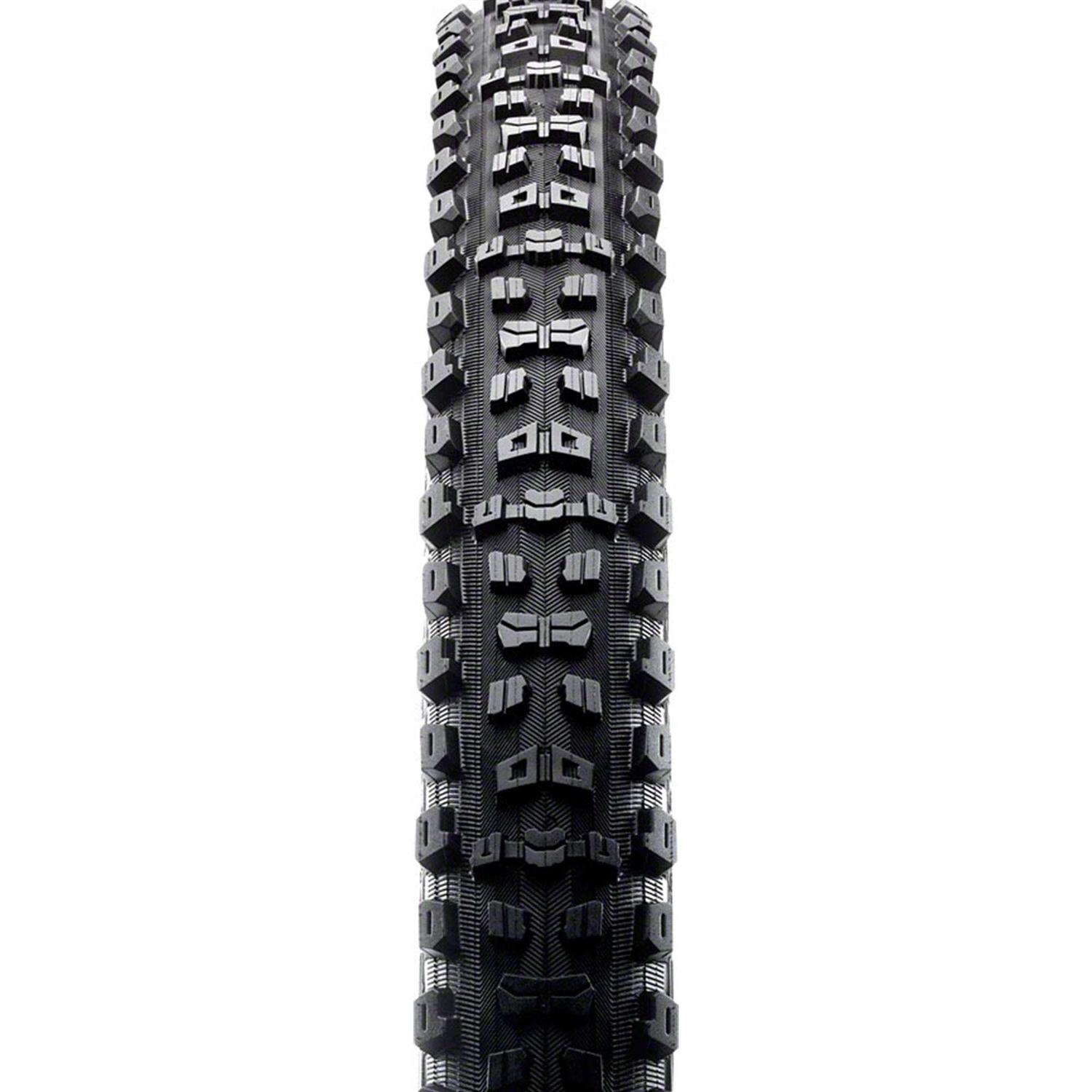 Bumping up the width, the Aggressor Wide Trail EXO/TR 29in tire brings you the Aggressor you love, but with a bit of extra traction and plush feel for railing banked berms and sending it into loose rock gardens. With lugs extending further up the sidewall, and reliable EXO sidewall protection, you can book it down the trail in loose and dry conditions with the confidence of tacky hero dirt. You can run the Aggressor as a front or rear tire, seeing the softer side knobs provide tons of stability when leaning into corners, but without excess drag to slow you down, as the center uses a harder compound rubber for quick rolling. Its tread pattern lends its self towards loose and dusty trails, and medium-pack, making it an ideal summer tire for those of us who live in dustier places where the sun leaves trails bone-dry. Ultimately, the Aggressor is fun to play around with on a number of trail conditions, provided your trail isn’t a mud pie from recent rainfall. The Wide Trail design on this particular Aggressor is designed for running rims ranging from 30 to 35 millimeters of inner-width, giving you shorter sidewalls for steering precision, correct knob spacing for railing corners with plentiful grip, and increased support for running lower pressures. This results in a tire that’s built for the rigors of aggressive riders who desire better cornering grip and increased bump compliance, without worrying about losing support as they drop the air pressure.