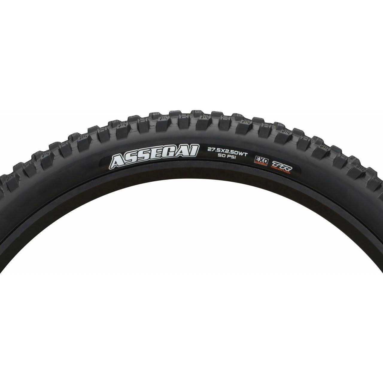 Tyre 27.5 2.50 Maxxis Assegai 3c Exo 120 tpi Tr: World Cup Champion Greg Minnaar’s signature tyre. The Maxxis Assegai tire is named after the iron-tipped spear used by the Zulu people of South Africa. Greg Minnaar, a native of South Africa, thought it was a fitting name for a tire ready to do battle on the mountain. The tall knobs punch through dust and loam to find traction, but also offer support and confidence on wet roots and rocks. While other tires excel only in certain conditions, the new Maxxis Assegai is built to go fast everywhere. EXO An extremely cut-resistant and abrasion-resistant material added to the sidewalls of select mountain tires. This densely woven fabric is also lightweight and highly flexible, ensuring that the performance of the tire remains unaffected. 3C MaxxTerra An intermediate compound configuration used in select mountain tires. 3C Maxx-Terra is softer and offers more traction than 3C MaxxSpeed, yet provides better treadwear and less rolling resistance than MaxxGrip.