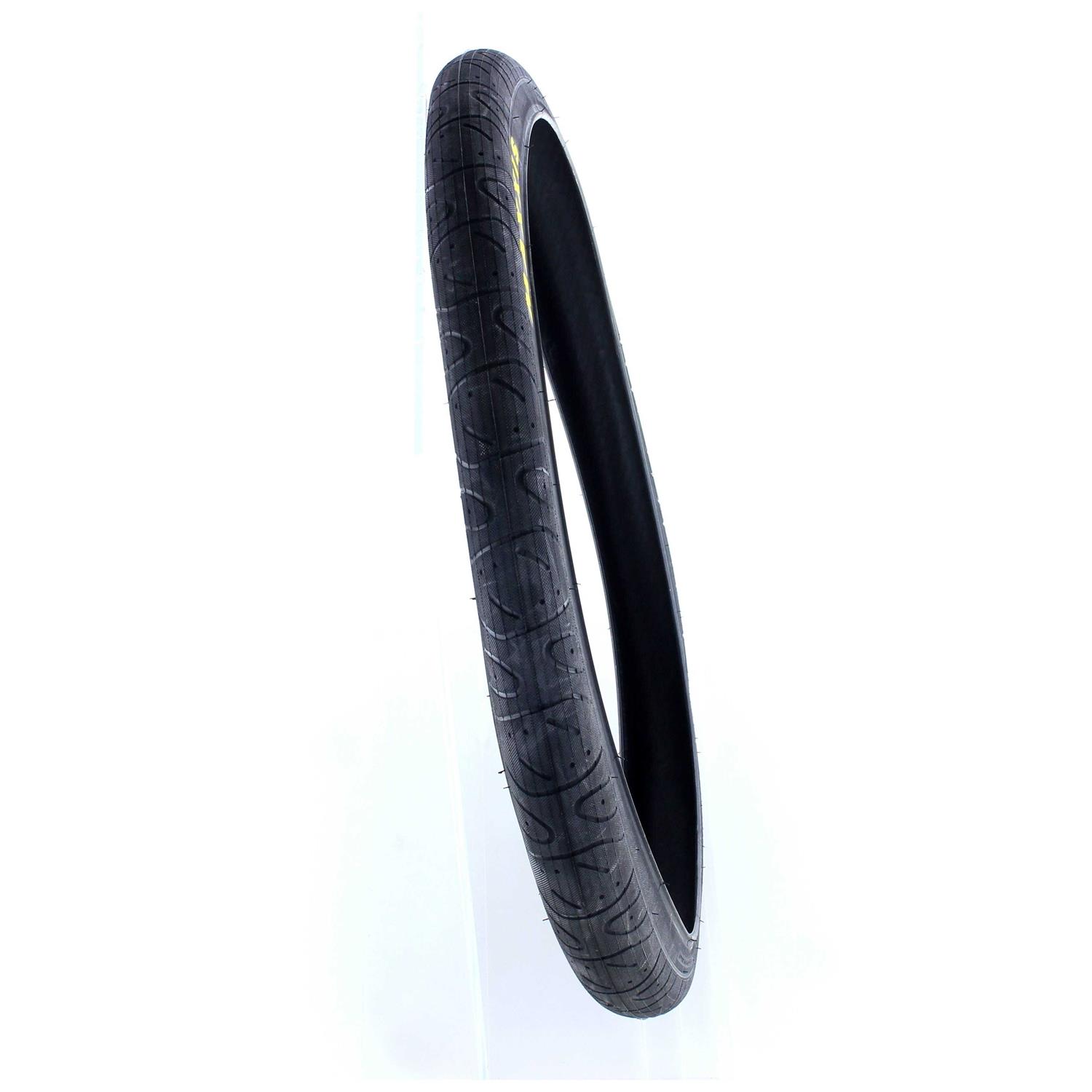 The original urban assault tire, designed to take the abuses of the most aggressive street riders. Huge air-volume softens the drops, while the inverted tread design makes rolling resistance minimal. Bead-to-bead tread provides durability & traction whether you’re dropping staircases, grinding rails or riding in your local skatepark.