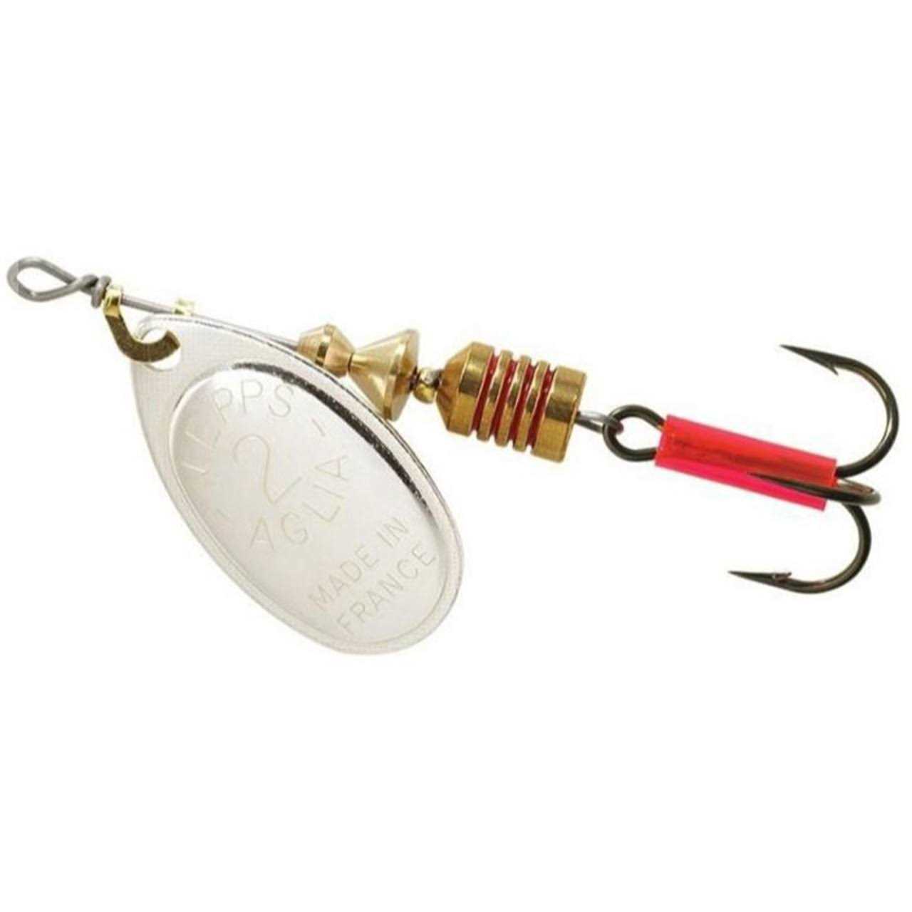 Mepps plain treble or single hook Aglias in size No.00 or No.0 are perfect for panfish (bluegills or sunfish) and small stream trout. They are very light, however, and require a nimble rod, equipped with a light action reel spooled with light line; nothing heavier than six-pound-test. Two-pound-test to four-pound-test is better. Aglias in size No.1 and No.2 are perfect for larger stream trout and large bluegills, sunfish and crappies. Size No.2 Aglias are also excellent for smallmouth bass and walleye. These sizes are ideal for teaching youngsters the basics of spinner fishing, as they are heavy enough to cast well with light tackle, yet they are small enough to catch a wide variety of fish. Size No.4 and No. 5 Aglias are ideal for large rainbow trout and steelhead, as well as coho (silver) and Chinook (king) salmon. Mepps single hook Aglias can be used virtually anywhere single hook lures are required. They are perfect for Alaska.