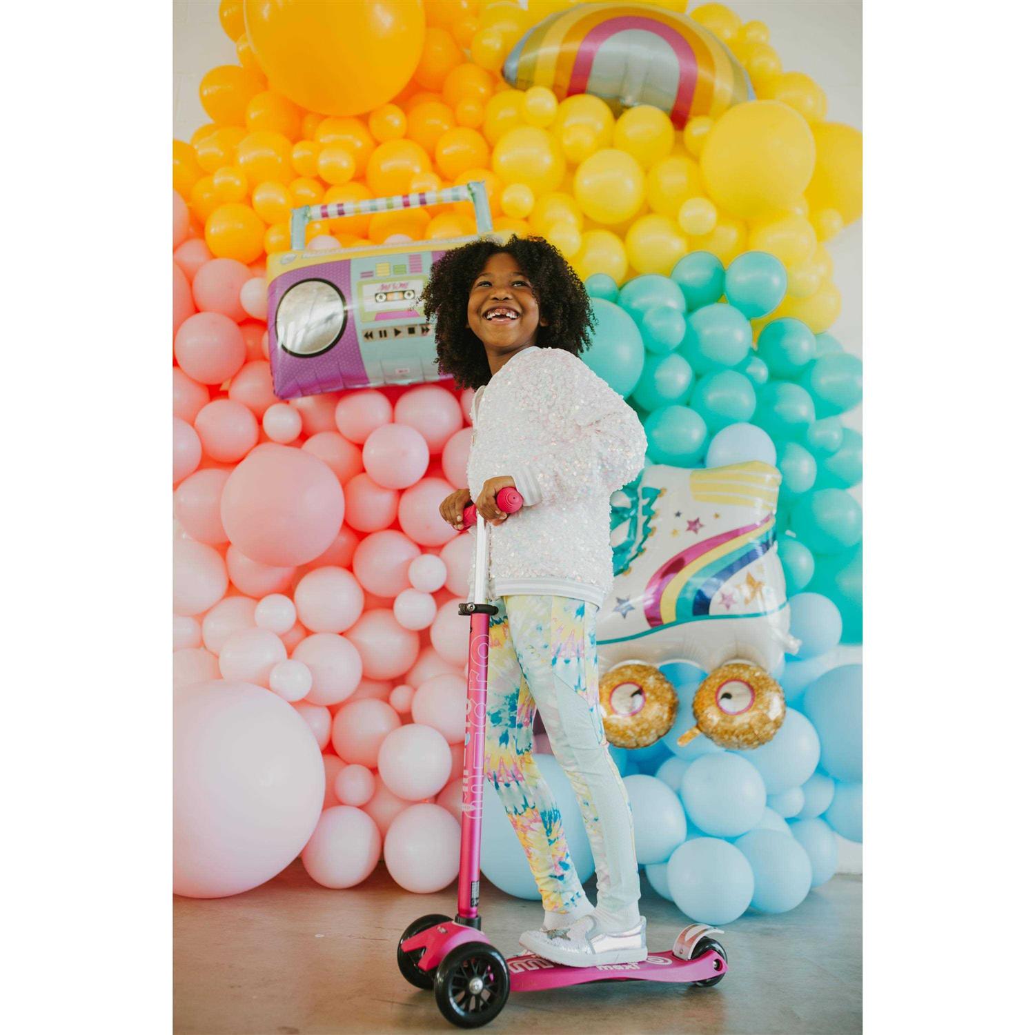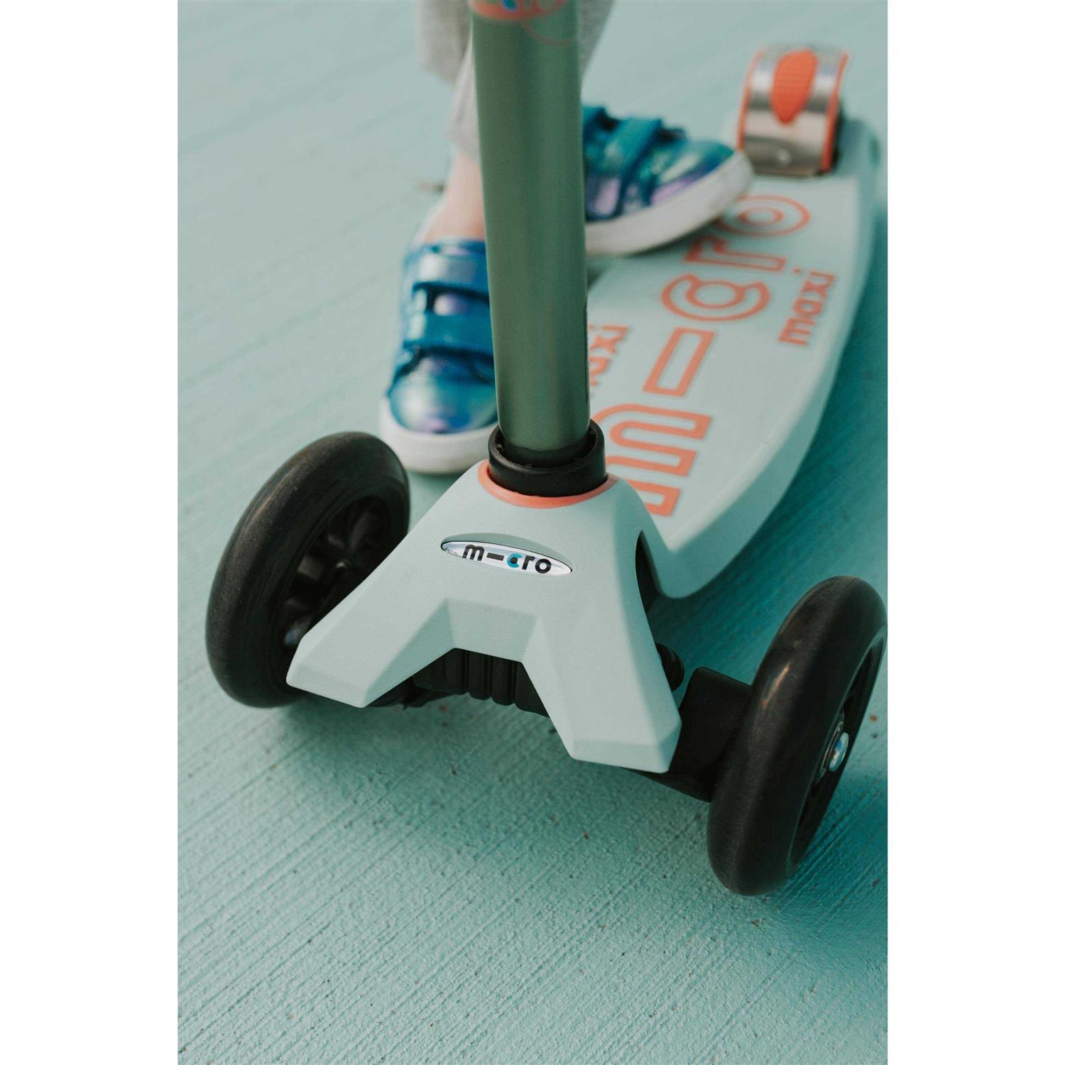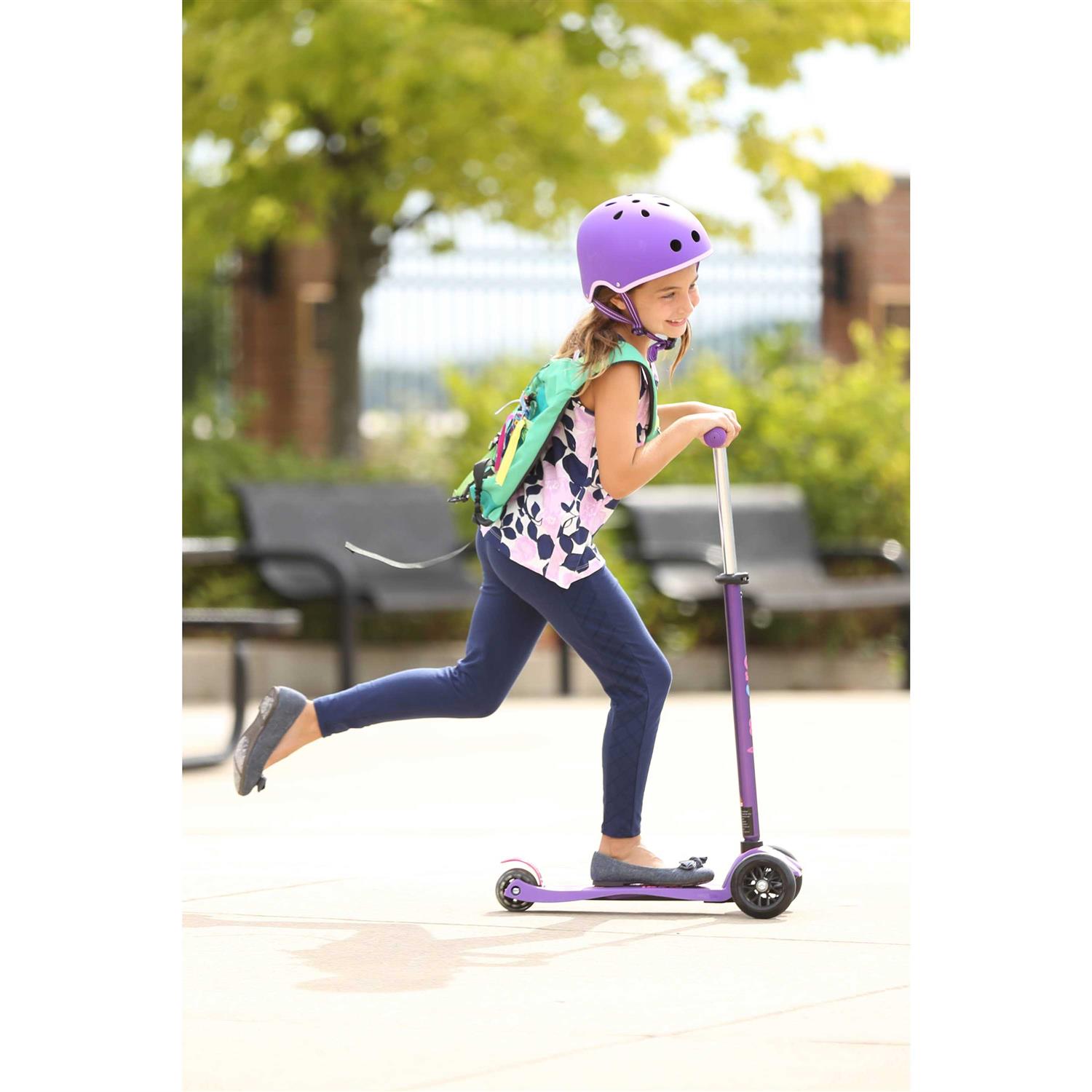 - Micro’s lean-to-steer kickboard-style ride helps develop balance and coordination skills.