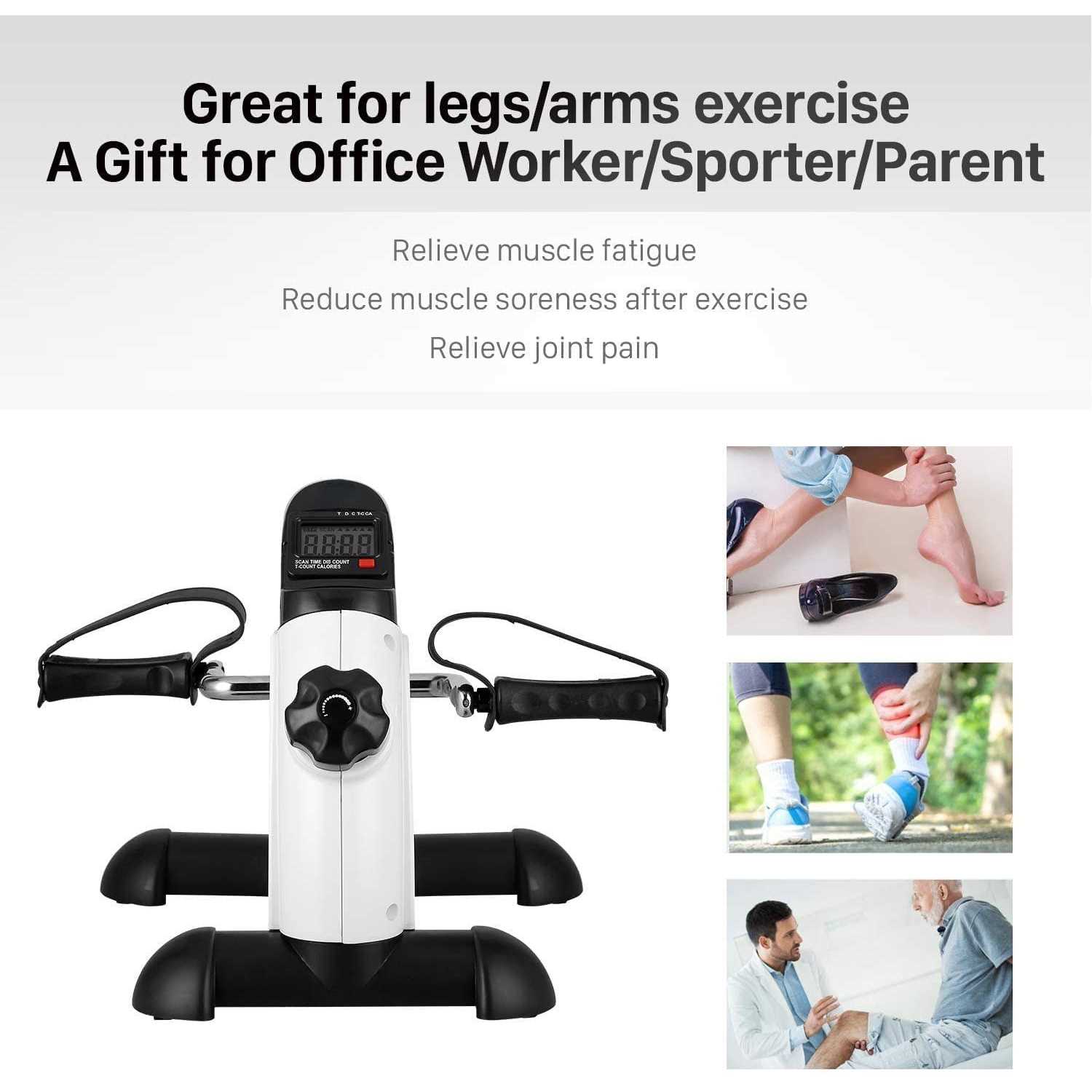 Ideal Gifts for Senior & Exercise beginner. 【Easy Exercise】Desk pedal exerciser can be used to strengthen arms and legs, improving stamina and relieving tension for keep fit and vigorous. Lower leg exercise, Low impact exercise make the exercise peddler perfect for senior citizens, office workers. 【Multifunctional LCD Display】It is easy to read time, distance, count(number of turns), total count and calories burned of LCD screen displays, press the red button to switch data or reset the data to zero. Record your exercise! 【Compact & Portable】The bike pedal exerciser machine is 12.1 in. The compact design allows you to put it under the table while working in the office or reading or watching TV at home. Exercise at any time. Can be carried with you. 【Easy Assemble & Non-Slip】Comes almost fully assembled,a few minutes and no any tools needed, very quick and easy to assemble. Each pedal also has a nonslip surface with molded finger grips and adjustable toe loops for added comfort and safety. 【Adjustable Workout Intensity】Easily adjust the resistance level with the tension knob to meet your needs.