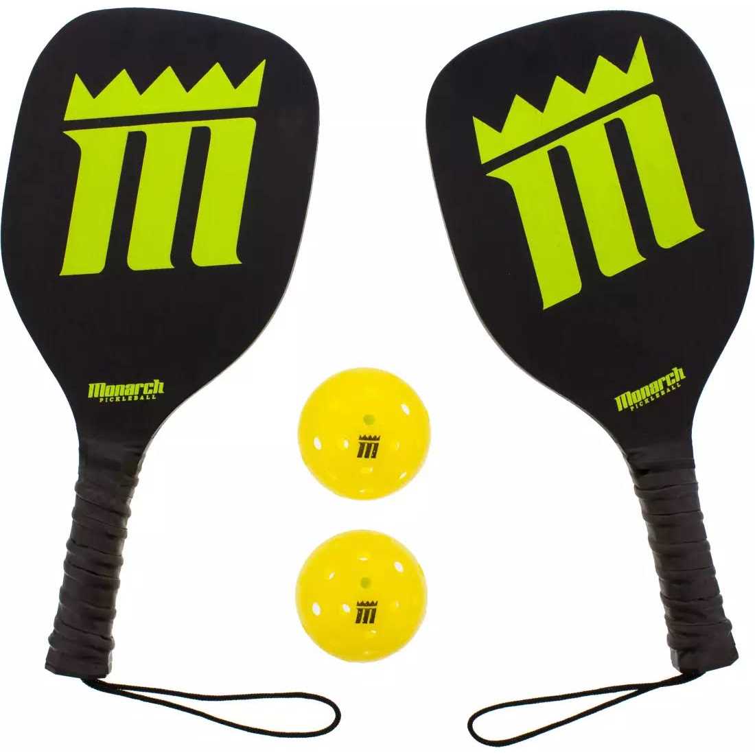 Complete with all the essentials you need for a pick-up game of pickleball, the Monarch Pickleball Pack features two wood paddles and two balls for easy transport of your favorite game anywhere you go.