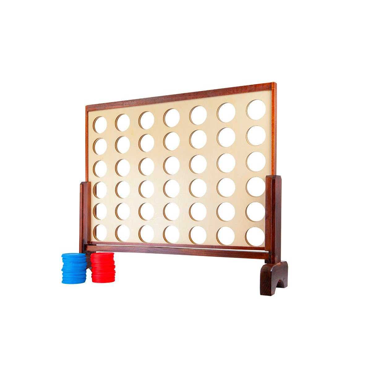 Who said adults can’t play games? Giant lawn games are here for all to play! Be the life of the party with this giant Four-in-a-Row game. The game comes with carrying case for easy portability. The giant grid is made from 100 Percent real wood and measures approximately 3 feet wide by 2 feet tall. The 42 coins are 3.5 inch diameter solid plastic.