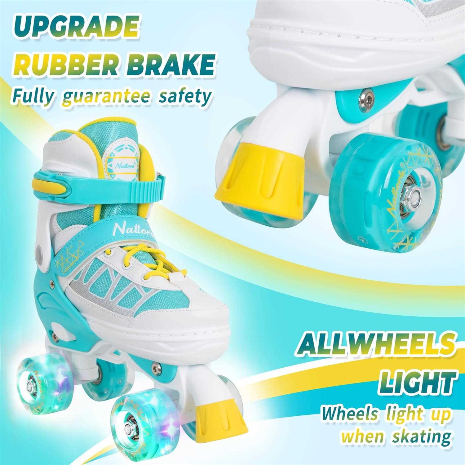 Nattork Roller Skates for Kids Boys Girls 4 Size Adjustable Rollerskates with Light Up Wheels for Children Beginners for Outdoor Indoor