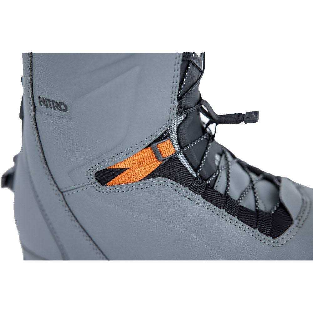 It goes by the name ‘Step On’, and it’s just as simple as it sounds. That means you get the superior comfort, fit, and performance you’ve come to expect from Nitro, with the added convenience and speed of Step On technology. Perfection. Flex Rating 8 (1 Soft – 10 Stiff) Armored Spine Nitro uses an anatomically-shaped and 3D-molded heel reinforcement to provide even boot flex and long-lasting heel fit. Dual Density Ortholite Footbed The world’s leading supplier of open-cell foam insole technology provides a dual density footbed for support and comfort with an anti-microbial, moisture-wicking technology for drier, less odorous experience. Cloud 9 Liner Ultra-lightweight pre-molded Thermacell material creates a straight out of the box fit with unstoppable comfort. Nitro’s signature latex heel pads provide lifetime heel fit, while the clutch tongue makes boot entry and exit easier. TLS Twin Lacing System Nitro leading the pack with the TLS lacing system: Easy lace engagement and release, combined with the low abrasion of Dyneema laces are the key factors of this highly reliable zonal lacing system. At the same time, the TLS features compact size and low weight while maintaining reliability.