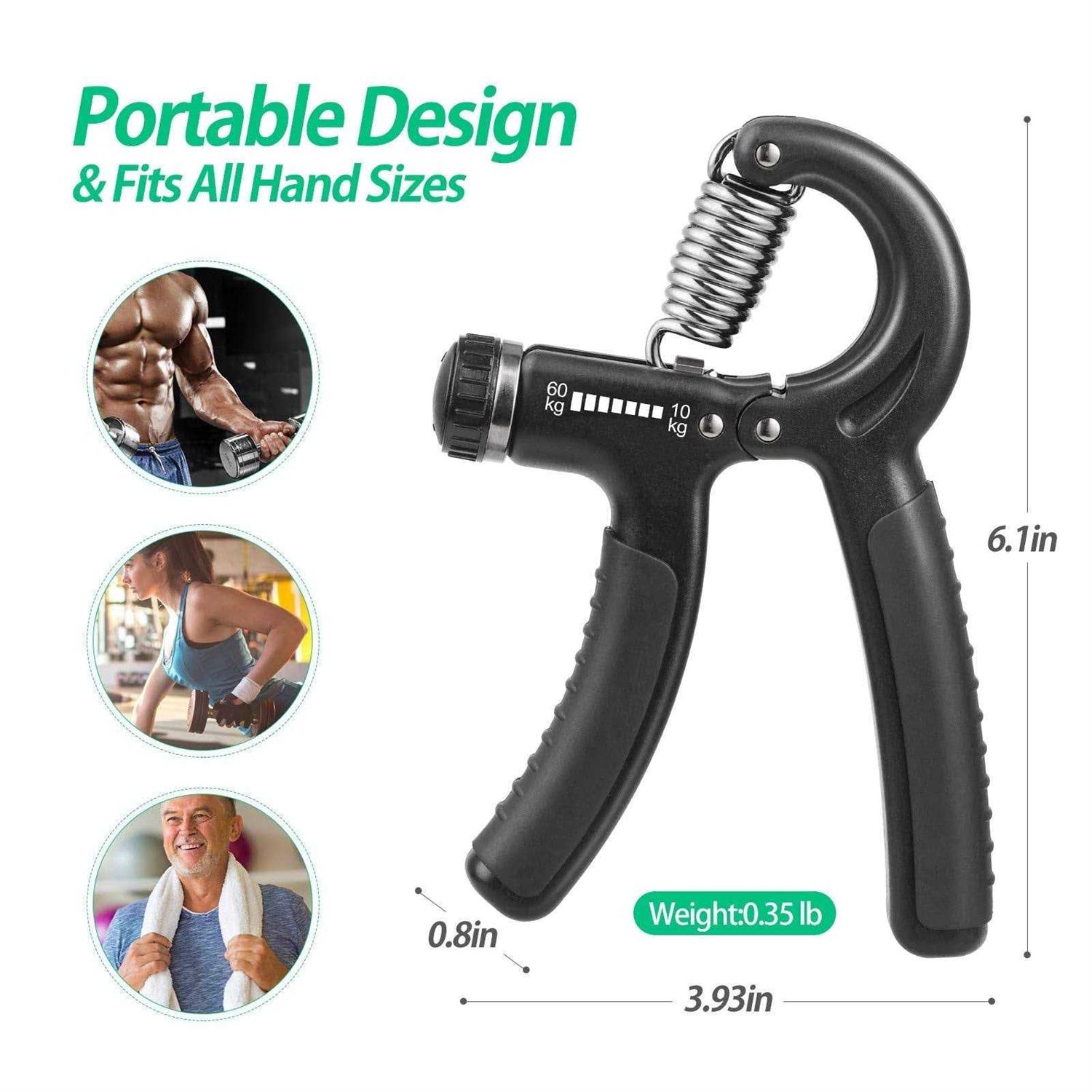 NIYIKOW Grip Strength Trainer, Hand Grip Strengthener, Adjustable Resistance 22-132Lbs (10-60kg), Non-Slip Gripper, Perfect for Musicians Athletes and Hand Rehabilitation Exercising Product Features IMPROVE YOUR GRIP STRENGTH & INJURY REHABILITATION – The NIYIKOW adjustable grip strengthener is excellent for strengthening hands, forearms, wrists and fingers. Its easy and efficient, and it helps to strengthen your grip, injury rehabilitation, relieve stress, and increase stamina. Ideal for anyone wanting to develop and maintain strong healthy hands. Nice hand strength exercise for those who have Arthritis, Tendonitis, Carpal Tunnel, and those who are recovering from tendon surgery. ADJUSTABLE RESISTANCE & PORTABLE PERSONAL HOME GYM – Adjustable resistance, you can adjust it from 22 lbs (10 kg) to 132 lbs (60 kg) according to your need. Can be done at home or in office with just 5-10 minutes per day. Perfect for athletes, musicians, rock climbers, tennis players, etc. HIGH QUALITY & DURABLE – Our grip strength trainer is made of heavy-duty plastic and reinforced metal alloy materials, unlike our competitors, which will break or even be made of low-quality materials. Durable and safe, it will not damage your hands and fingers, which will bring you an excellent user experience. FITS ALL HAND SIZES & PORTABLE DESIGN – No matter youre women or men, kids or adults, beginner or an experienced person, you can start grip training anytime and anywhere. Suitable for all age groups and fits well for all hand sizes. NIYIKOW hand gripper is made of lightweight and high-quality materials so that you can easily put them in your bag, pocket and carry them anywhere. You don’t have to return the product. No questions asked. Poseeruiz RECHAIRELAXOM