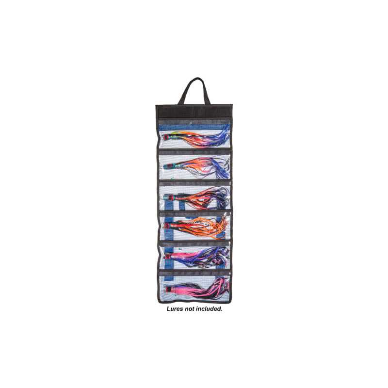Designed for transporting and storing big game lures, Offshore Angler Rig Lockers eliminate the hassle of tangled lures and leaders. These Rig Lockers are made with a durable PVC mesh back so wet lures can dry, and a clear vinyl pocket on the inside for easy lure identification. Each pocket has full-length hook-n-loop closure. The 6-pocket model has 6 pockets measuring 11-1/4″ x 4-3/4″. The 7-pocket model has 7 pockets measuring 14-1/4″ x 5-3/4″. Imported. For transporting big game lures; Durable PVC mesh back; Clear vinyl inside pocket;