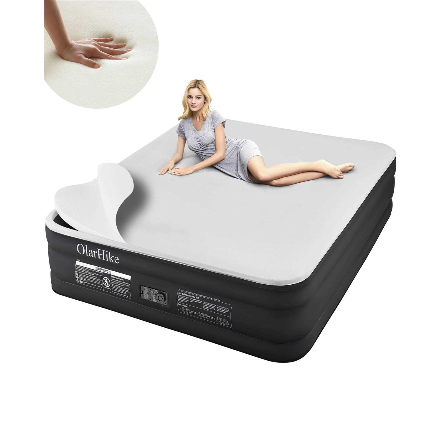 olarhike signature collection Air Mattress with built in pump,18” Luxury Air Mattress with Silk Foam Topper for Camping