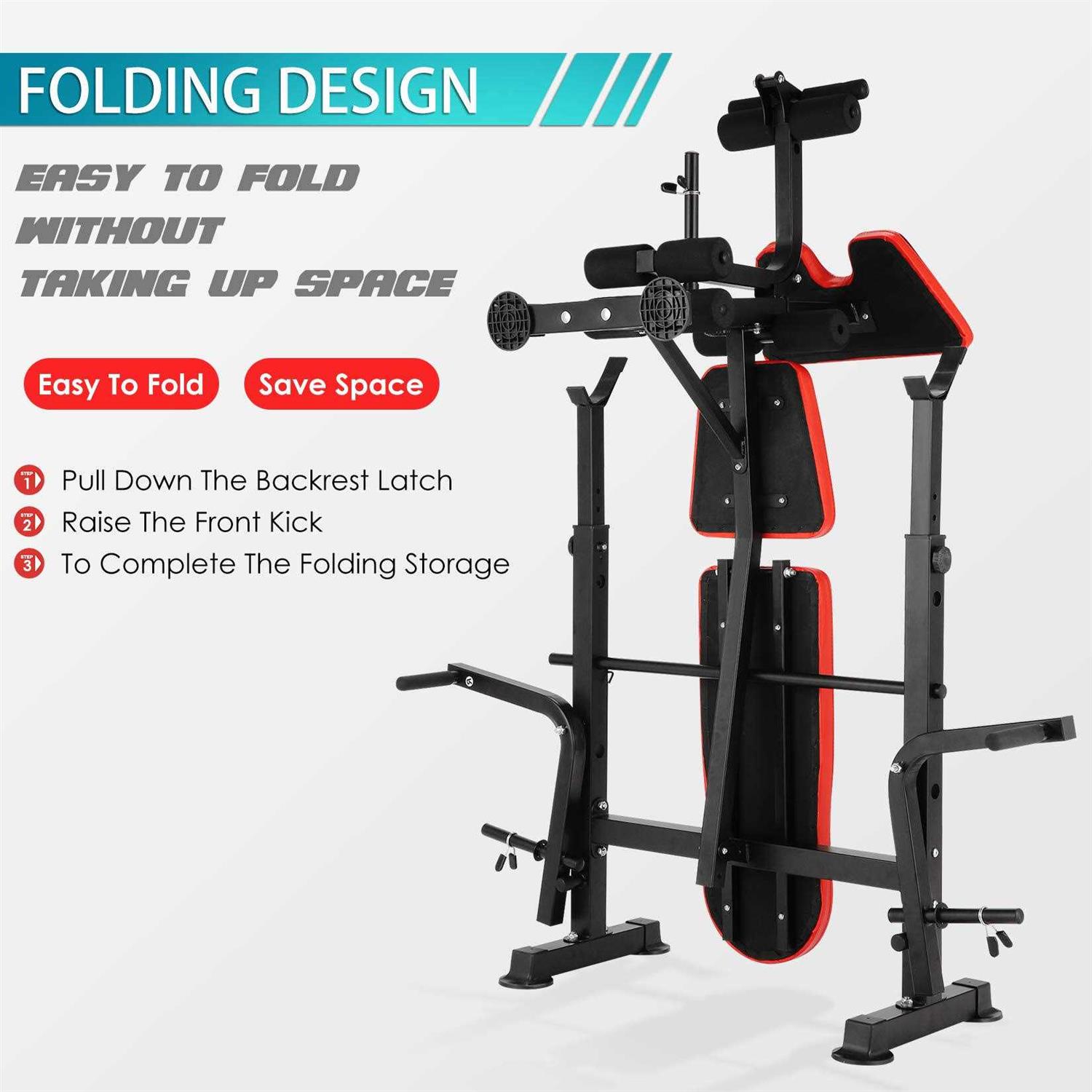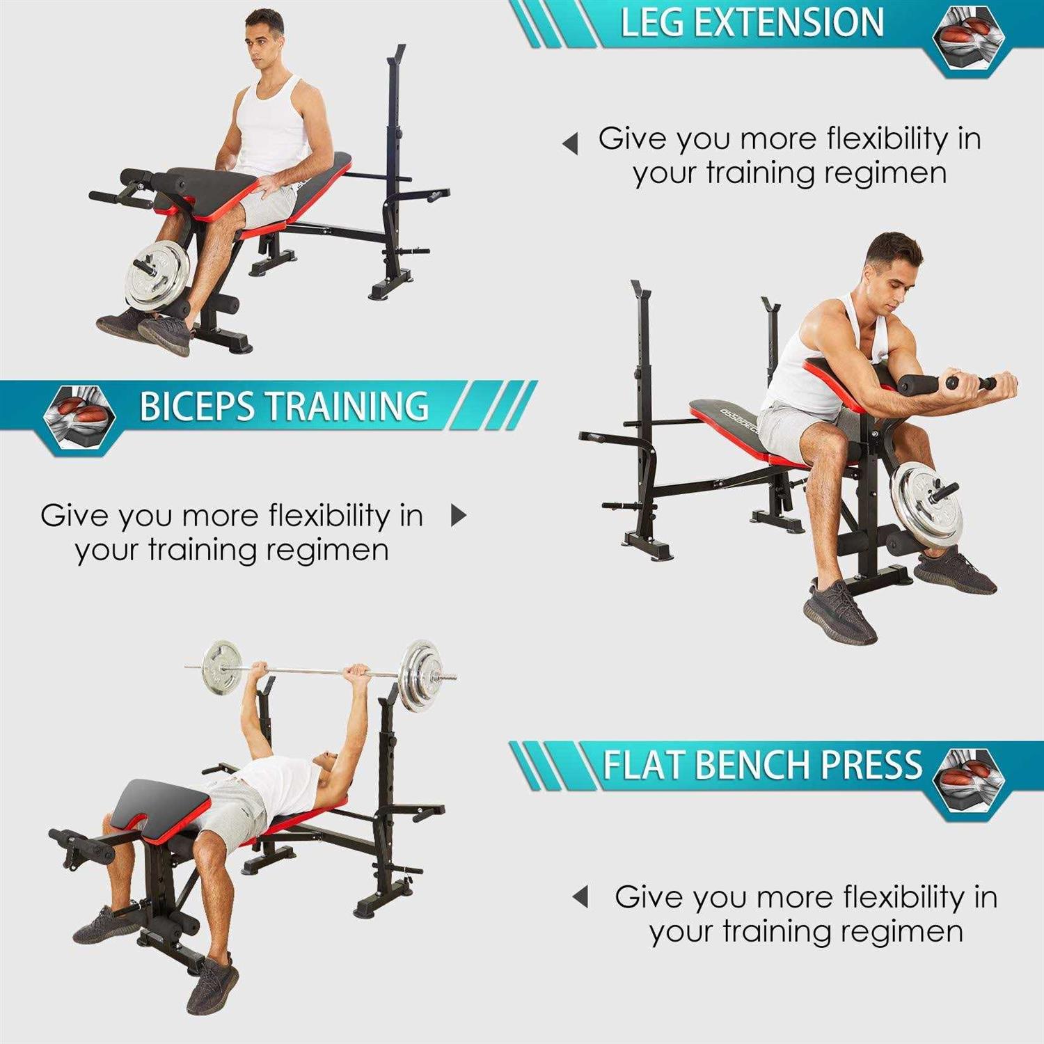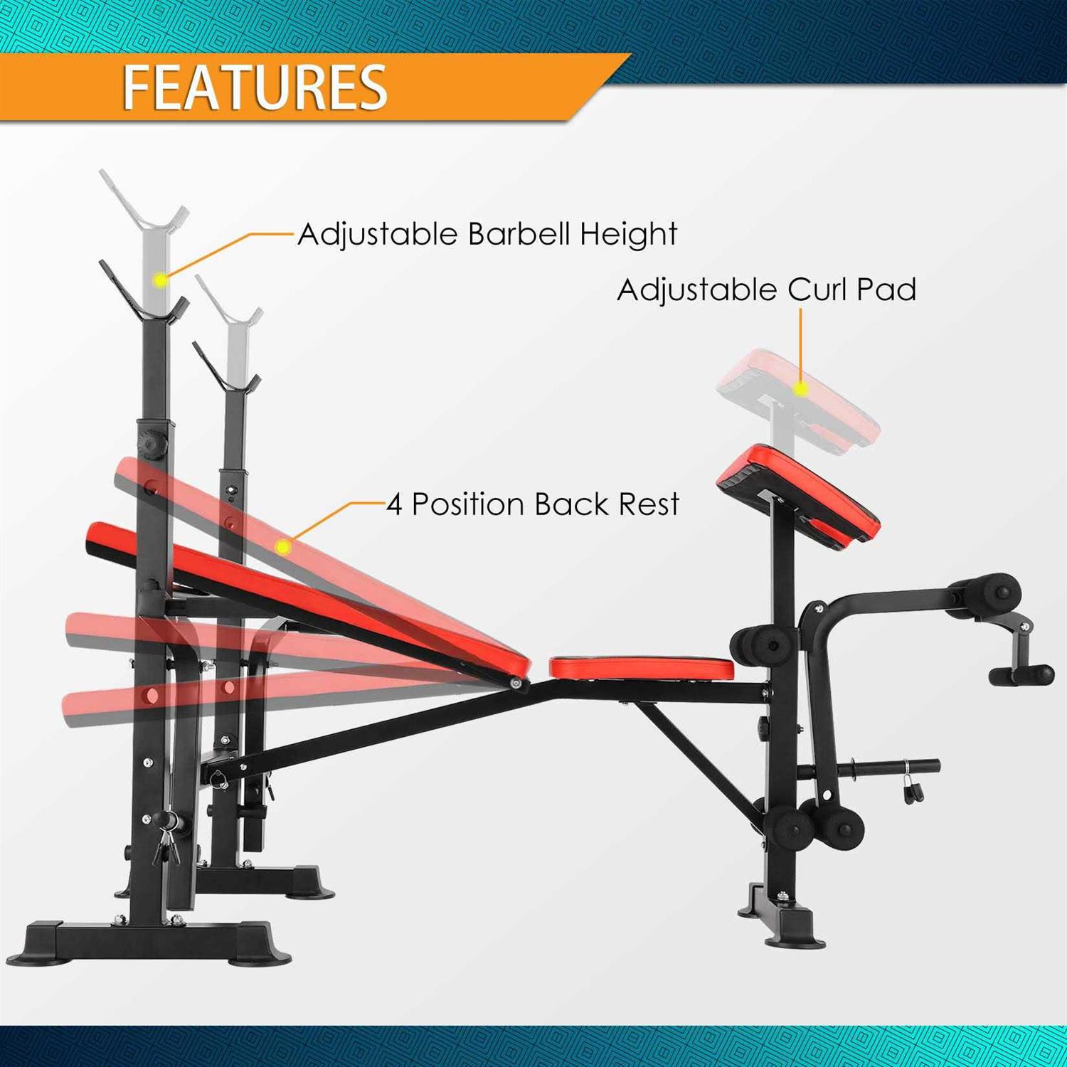 Multi-functionoppsdecor Weight Bench Is Suitable For Versatile Workouts Including Bench Press, Leg Extension, Leg Curl, Chest Expansion, Preacher Curl, Abdominal Crunch, Dumbbell Bench Press And So On. A Variety Of Workouts To Help You Get An Effective Full Body Exercise.adjustable Weight Benchthe Babrbell Rack Can Be Adjusted To 5 Different Levels So You Could Choose The Height Of The Barbell Bar For Easier Access. Besides, With 4 Adjustable Backrest Positions, This Bench Bress With Rack Is Very Suitable For The Biceps Curl, Bench Press, Shoulder Push, Abdominal Muscle Training, Leg Exercise, Dumbbell Push, Sit-ups, Etc. For More Workouts Please Refer To The Video Provided On The Left.durable & Safeconstructed From Heavy-duty Iron Pipes, Our Mutifunctional Weight Bench Set Has Maximum Load Capacity Of 330 Lbs. In Addition, Covered With Breathable Leather And Padded With Soft Foam, The Olympic Weight Bench Is Wear Resisatant And Comfortable.folding Designthe Weight Bench With Leg Developer Can Be Folded Up To Reduce Its Occupied Area And Save Space. Then You Can Move It To The Corner Of Home Or Office. Folding Dimension: 55 L X 17.5 W X 68 H.simple Assemblythe Bench Press With Rack Is Easy To Assemble, And All Required Accessories Are Included. You Can Effortlessly Assemble It In A Short Time According To The Detailed Instruction. Overall Dimension: 53 L X 31 W X 38.6-50.4 H;what You Get1 X Weight Bench( With Accessaries, But The Barbell And Weight Plates Are Not Included), 1 X Manual.