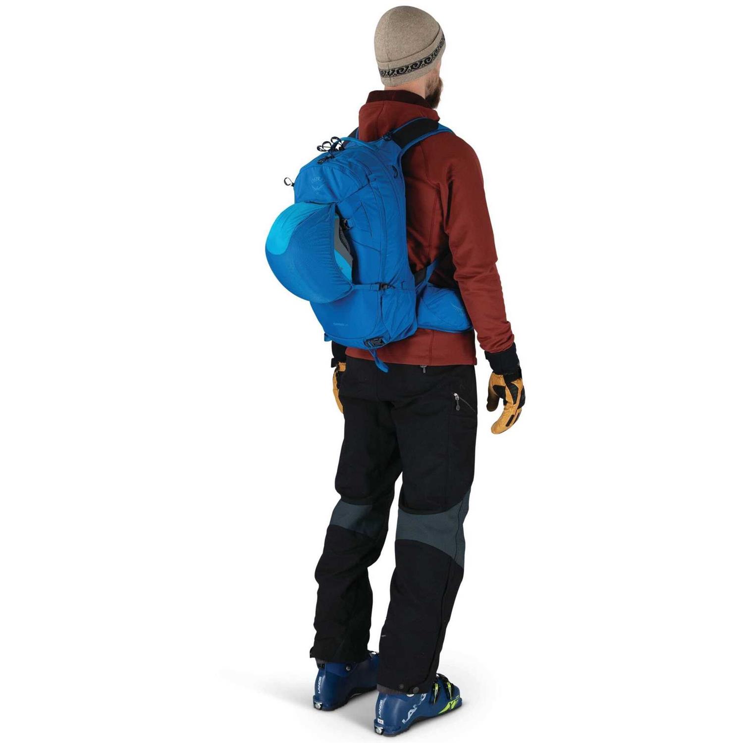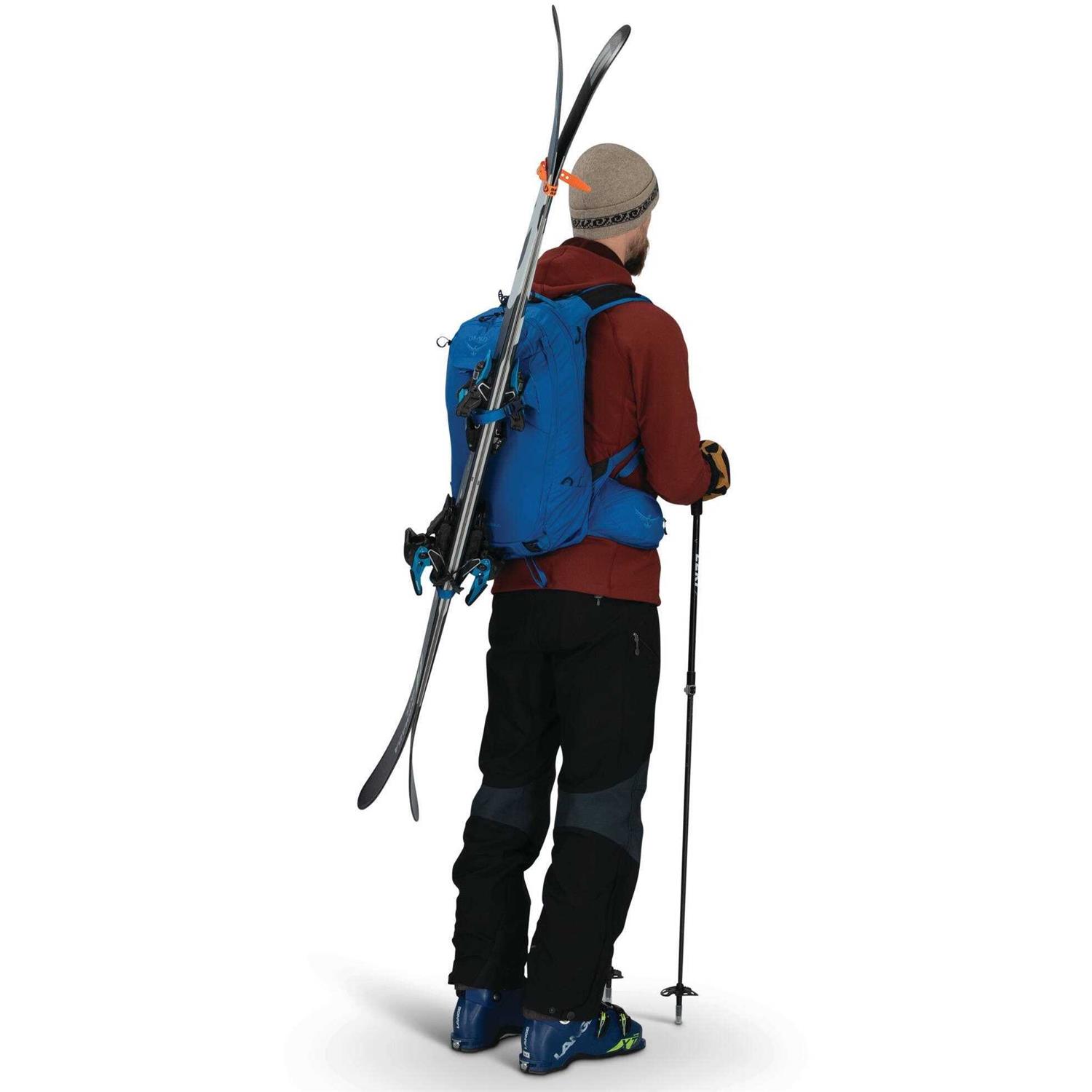 - Avalanche safety kit storage with shovel handle and probe sleeves