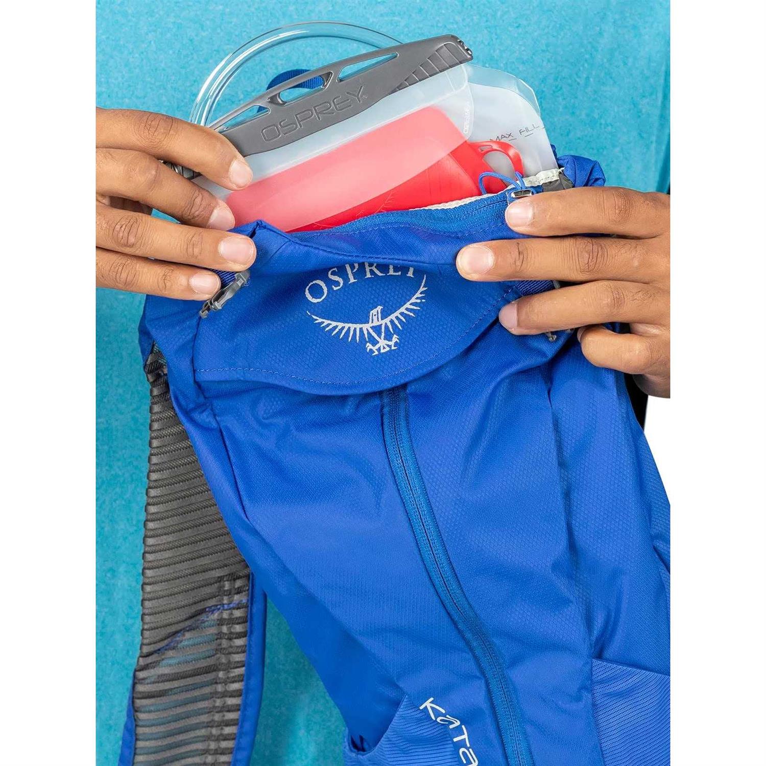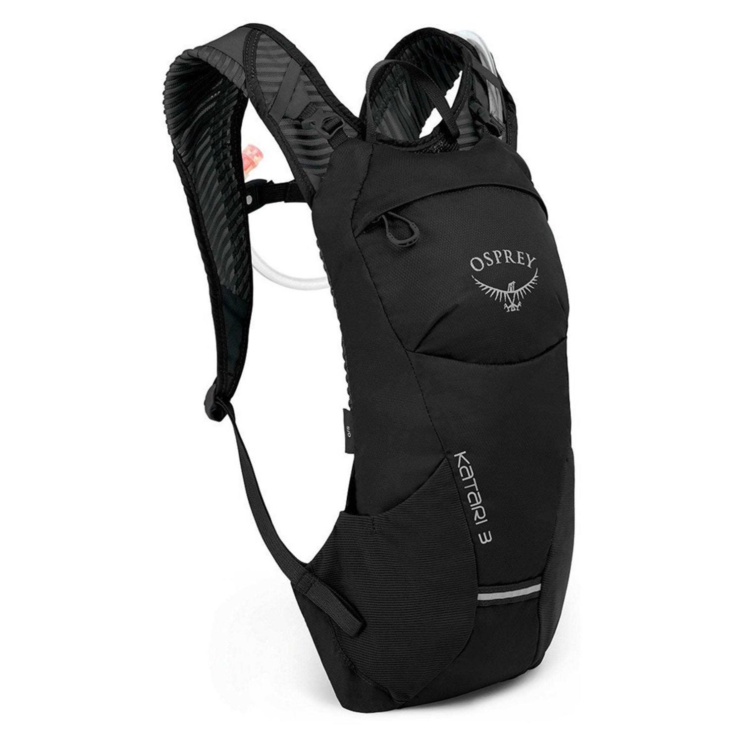 Osprey’s Katari 3 is a stripped down mountain biking pack, perfect for traveling lightly on the trail. An included 2.5-liter Hydraulics reservoir delivers convenient hydration while you ride. There’s enough room for small essentials like a pair of gloves or a multi-tool in the protected stash pocket. Adjustable sternum straps ensure a secure fit, and the mesh-covered foam backpanel keeps things comfortable and well-ventilated. Dual side stretch mesh pockets keep beverages within arm’s reach Protected pocket for easy stashing of layers and other items Included 2.5 L reservoir for convenient hydration on the trail Summer 2021 product Equipped With Hydraulics Osprey’s Hydraulics reservoir system features thermoplastic polyurethane (TPU) construction, and is entirely BPA-, phthalate-, and lead-free. The wide-mouth opening makes filling and cleaning easy, while their patented QuickConnect hose assures a reliable and convenient connection. Blaster bite valves are designed to provide high-volume flow, and the magnetic harness clip ensures secure and accessible valve placement. AirScape The AirScape system by Osprey utilizes 3D foam backpanels to keep the pack close to your body, forming a stable, secure fit. The panels are highly ventilated to prevent excess perspiration, and the foam adheres to your shape for long-term comfort. With six inches of adjustability, the AirScape system is designed to optimize the fit for a range of body types and sizes.
