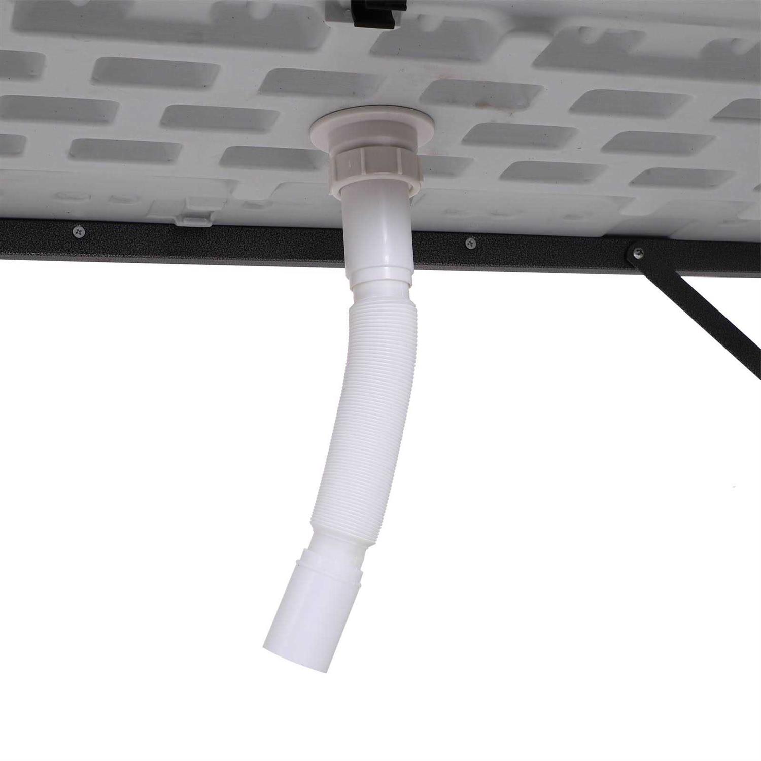 This cleaning table from Outsunny provides a portable sturdy and efficient work area for all your outdoor needs from cleaning fish to potting plants. It consists of a high-density plastic tabletop station and durable steel table legs which ensures years of reliable use. Designed with a large and deep sink you can wash food with great ease. A length adjustable drain hose and a stopper for the sink are included. The folding legs allow you to take this table anywhere and easily store it when your work is done. Perfect for camping fishing hunting gardening and almost any kind of outdoor activity.