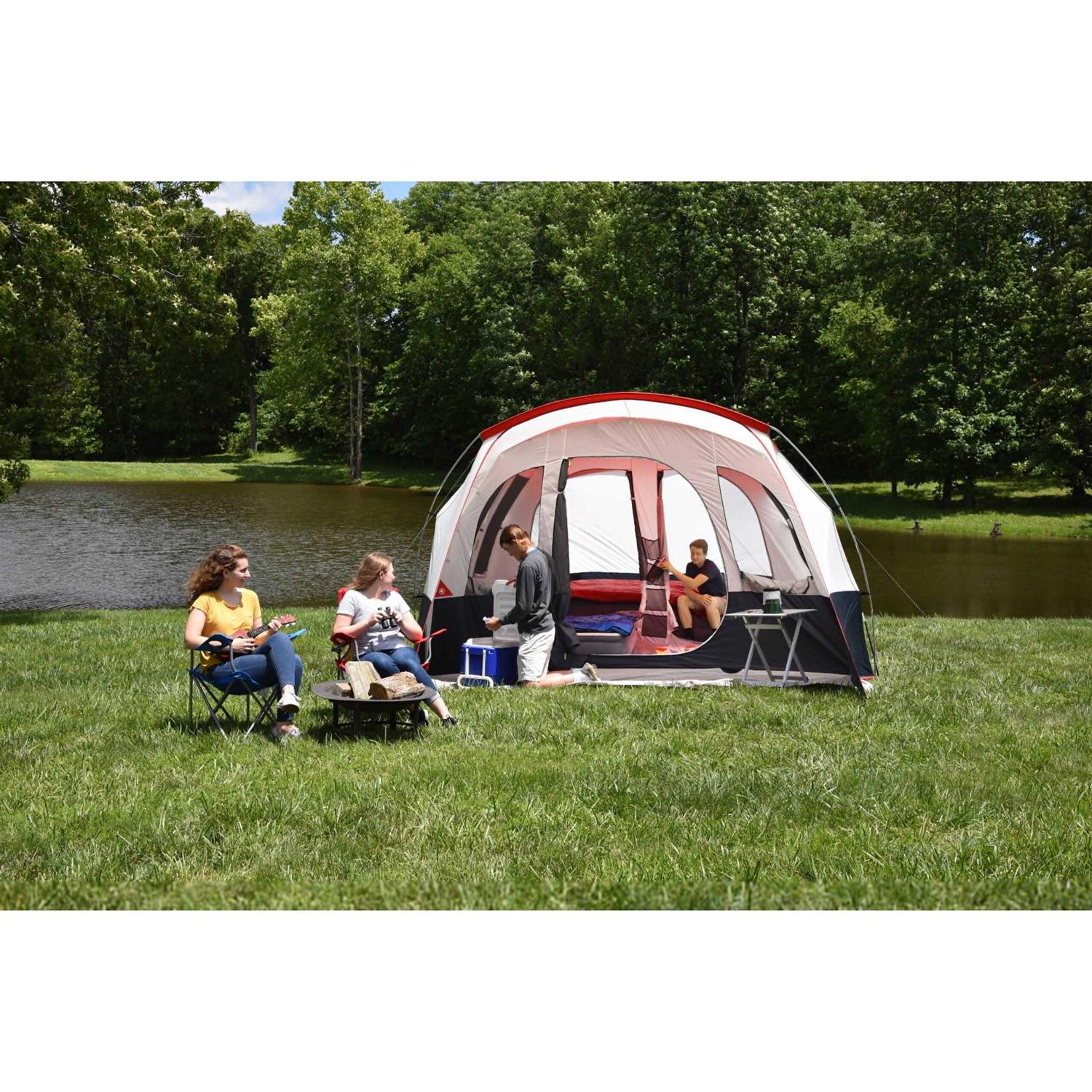 The Ozark Trail Hazel Creek 16 Person Tunnel Tent is an excellent choice for first time campers, year-round camping, family outings, group events, picnics, or music festivals. Is this tent easy to set up? From your backyard to local camp grounds, state and national parks, the Ozark Trail Hazel Creek 16 Person Tunnel Tent is fast and easy to set up for any outdoor adventure. It offers plenty of headroom for a more comfortable experience and can sleep up to sixteen adult campers. Will this tent keep you dry? The Ozark Trail Hazel Creek 16 Person Tunnel Tent features a seam-taped rainfly for superior weather protection to keep campers dry and protected in all weather. Large mesh window that can be opened, allows users the ability to keep cool on hot summer nights. This tunnel tent comes with a hanging media sleeve that supports most tablet sizes and power port to run an electric cord into the tent for power needs. It also features a mud mat to help keep the interior of the tent clean. The Ozark Trail Hazel Creek 16 Person Tunnel Tent is a perfect choice for camping, family outings, group events, picnics, or music festivals.