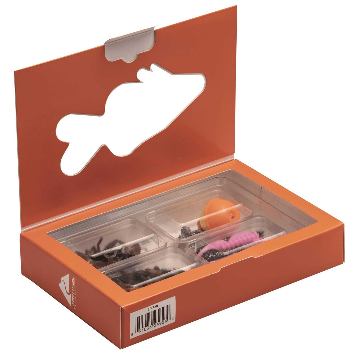 The Ozark Trail Creek and Pond lure kit is a complete solution fishing kit. This kit Includes 14 unrigged crawfish, 8 unrigged hellgramites, 8 unrigged crickets, 8 unrigged pad hoppers, 1 3/4-inch float, 4 size 4 hooks, 4 split shots, and 3 1/16oz unpainted jig heads. This kit is suitable for catching all predatory gamefish. Our baits are made with the highest quality components and designed to replicate the natural prey of most fish species. Everything you need to hit the water today!