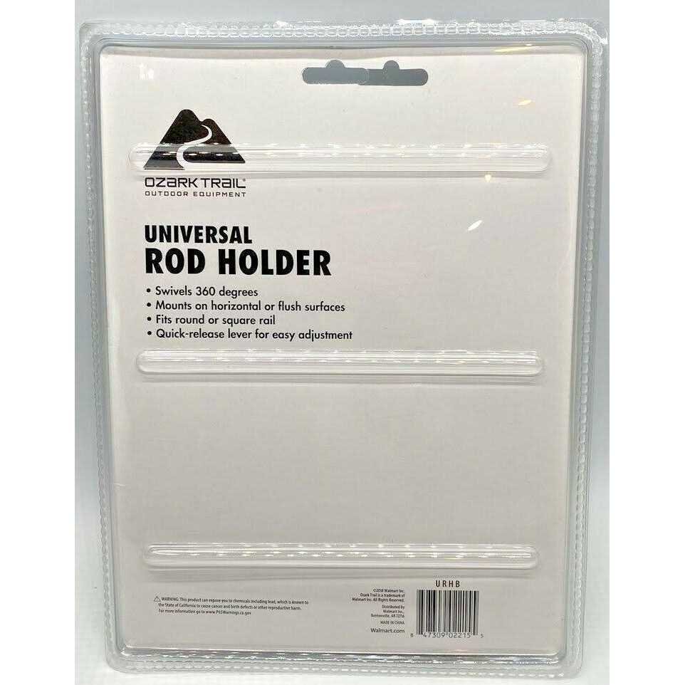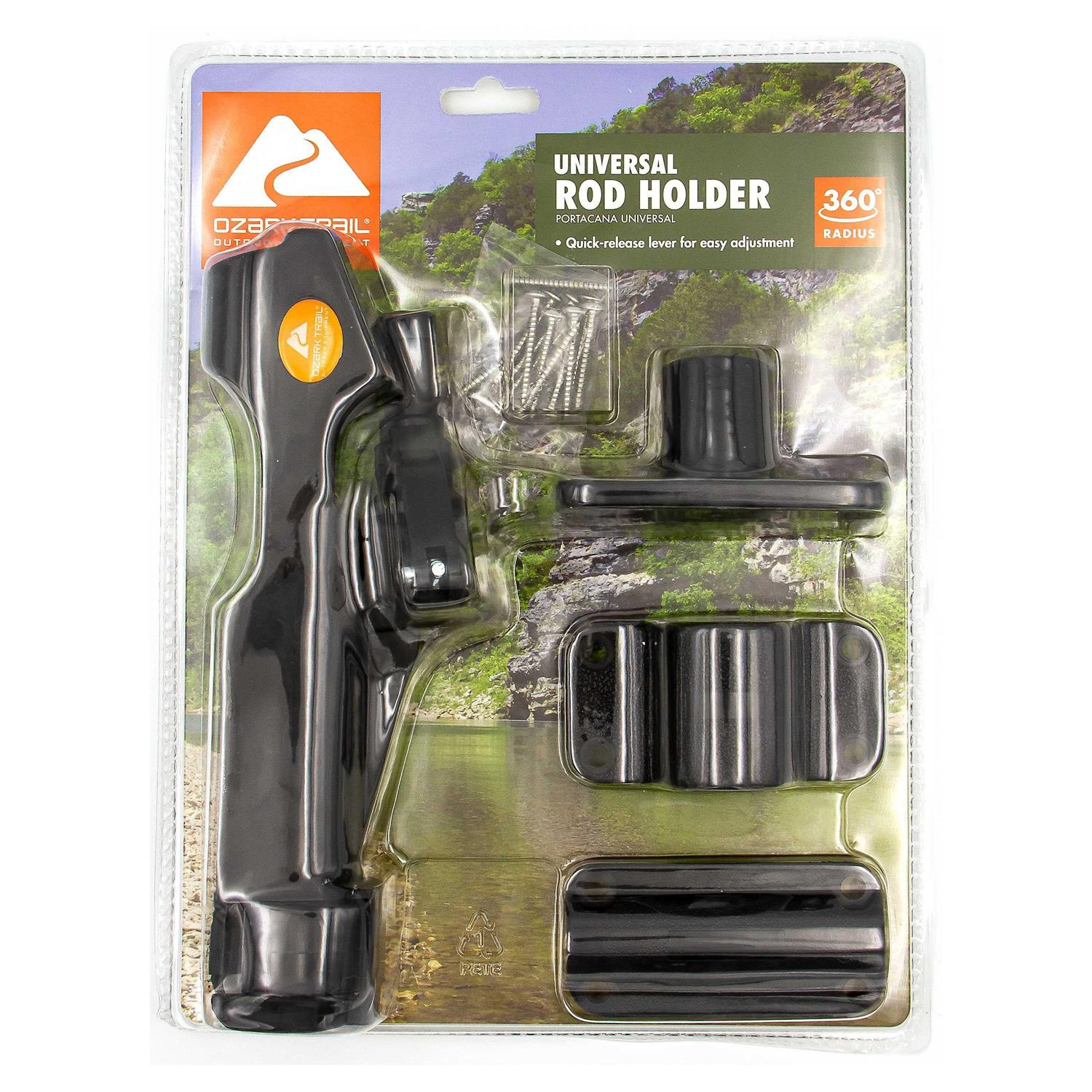 Go hands-free on your next fishing trip with the Ozark Trail Universal Rod Holder. Ideal for any fishing vessel, this deluxe fishing rod holder features four mount configurations: Flush, side, round rail or square pontoon rail mount this fishing boat rod holder fits almost anywhere. Lock in your rod with a fully adjustable, 360 pivot/swivel rod holder that always keeps you in the perfect position to reel in that fish. Made to handle 1 rod. Lightweight at only 1.5lb.