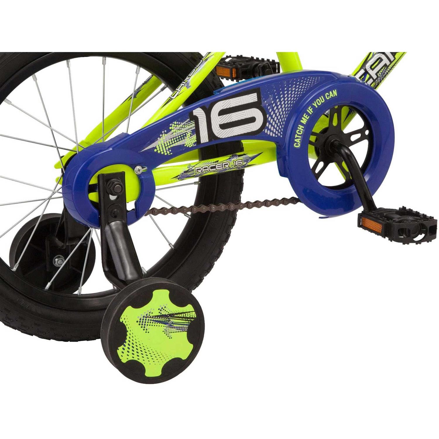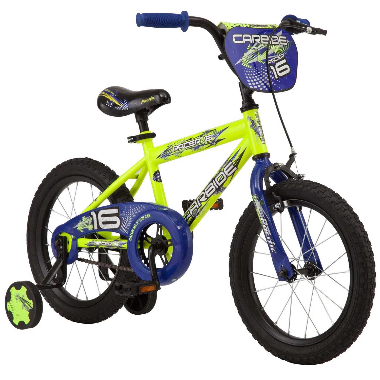 Teach your child to ride on the pacific carbide. This bike features a durable steel frame, single speed drivetrain, rear coaster brake, and hand brake for a great riding experience. Removable training wheels provide extra stability while your child learns to ride, plus the handlebar pad and number plate add cool bmx style. Design: kickstand not included. Designed with a durable steel frame. Single speed. Rear and hand brake. Removable training wheels. Made for new, young riders.