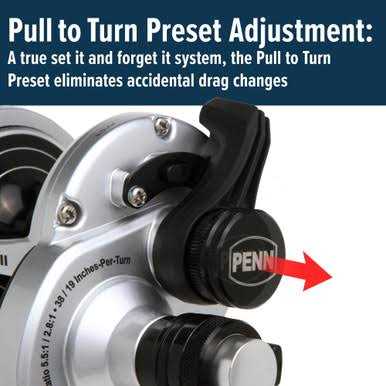 PENN Fathom II Lever Drag 2 Speed Trolling/Conventional Reel – The all-new Fathom II Lever Drag reels take a class-leading reel and raise the bar even more. New models sizing features and optimized billfish models round out the assortment to give a model for every application. Integrating the palm side plate and frame allows the Fathom II Lever Drag reels to be more compact in hand and increases strength. The Pull-to-Turn preset knobs allow the angler to truly set it and forget it. At the Fathom’s core is a stainless steel main and pinion gear and a forged and machined aluminum spool for maximum durability.