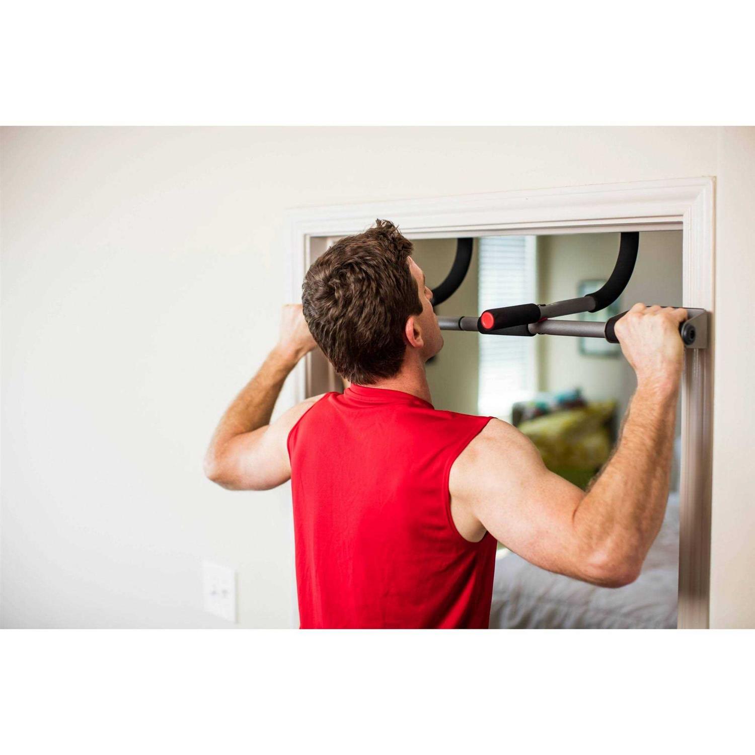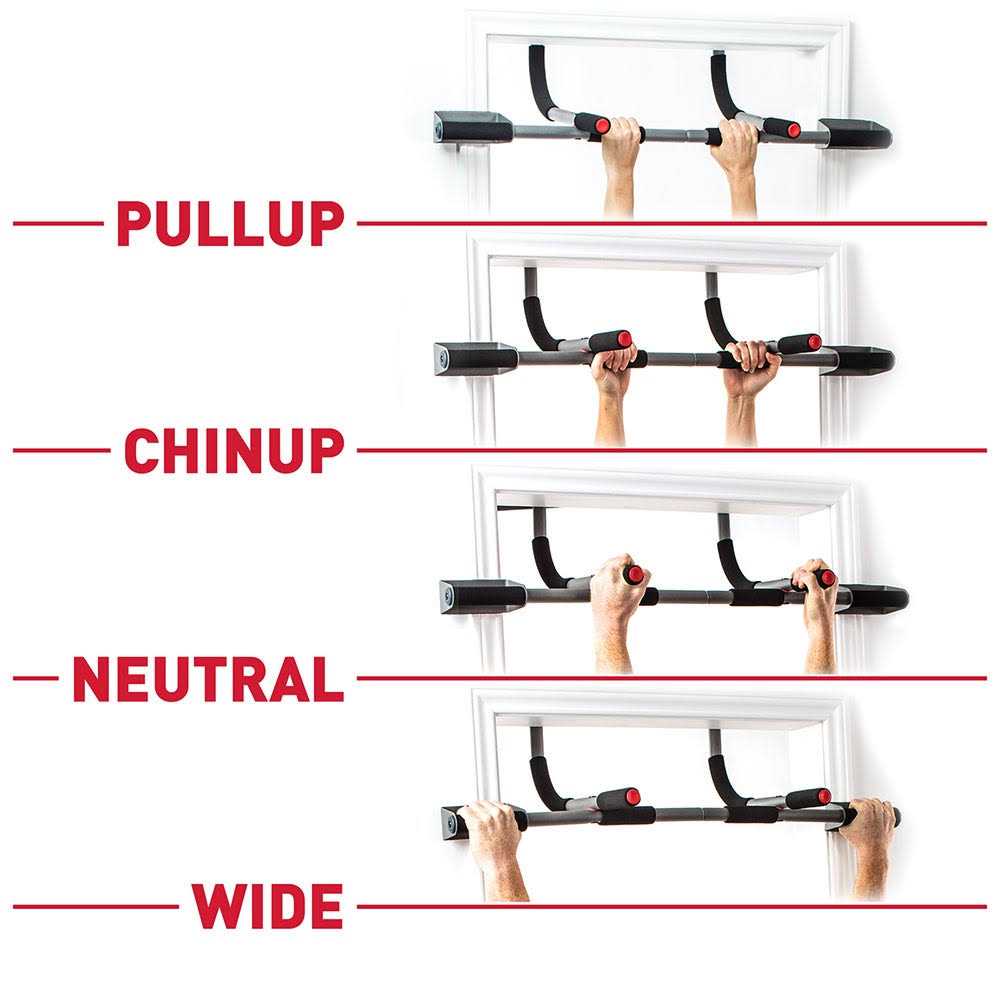 It transforms a regular doorway into the perfect home gym. Do chinups and pull ups with multiple grip positions Adjustable for exact fit in doorframes up to 33″ wide Helps protect door frame, includes patented door frame guards sturdy, 300 lb weight capacity.