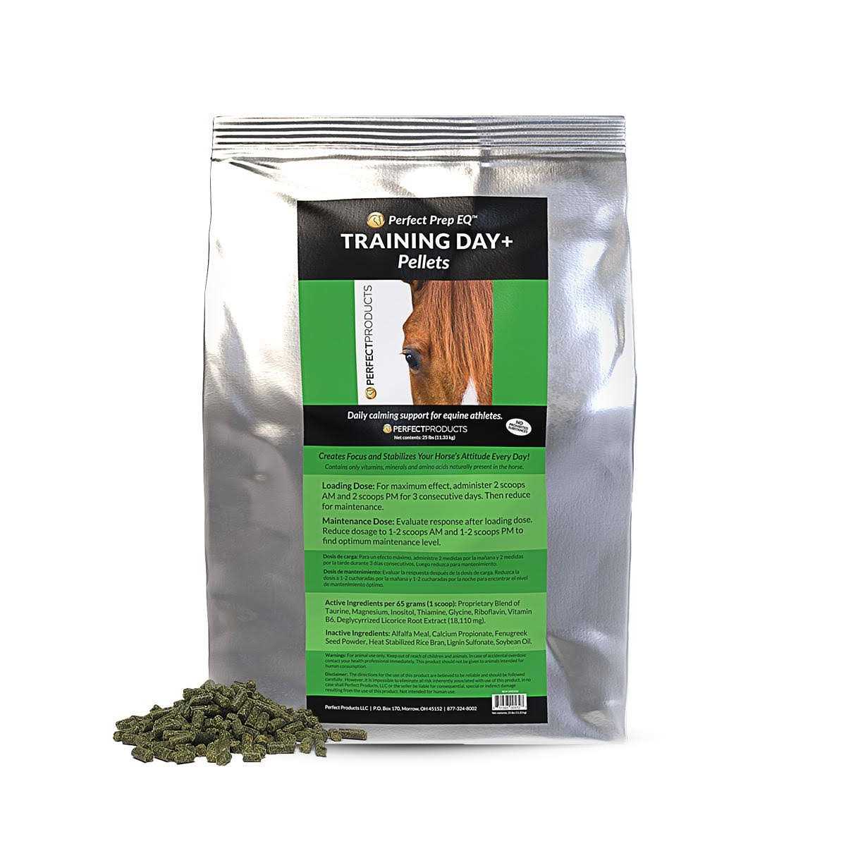 Same great product now in convenient easy to feed Pelleted form! Perfect Prep EQ Training Day is a daily calming supplement that helps to create a more focused equine that is ready to work! Helps to reduce anxious and nervous behavior, can be used daily and can be used along or with Perfect Prep Calming System. Ingredients in the Training Day Pellets act on the blood sugar primarily, you can achieve the desired effects without sacrificing movement.