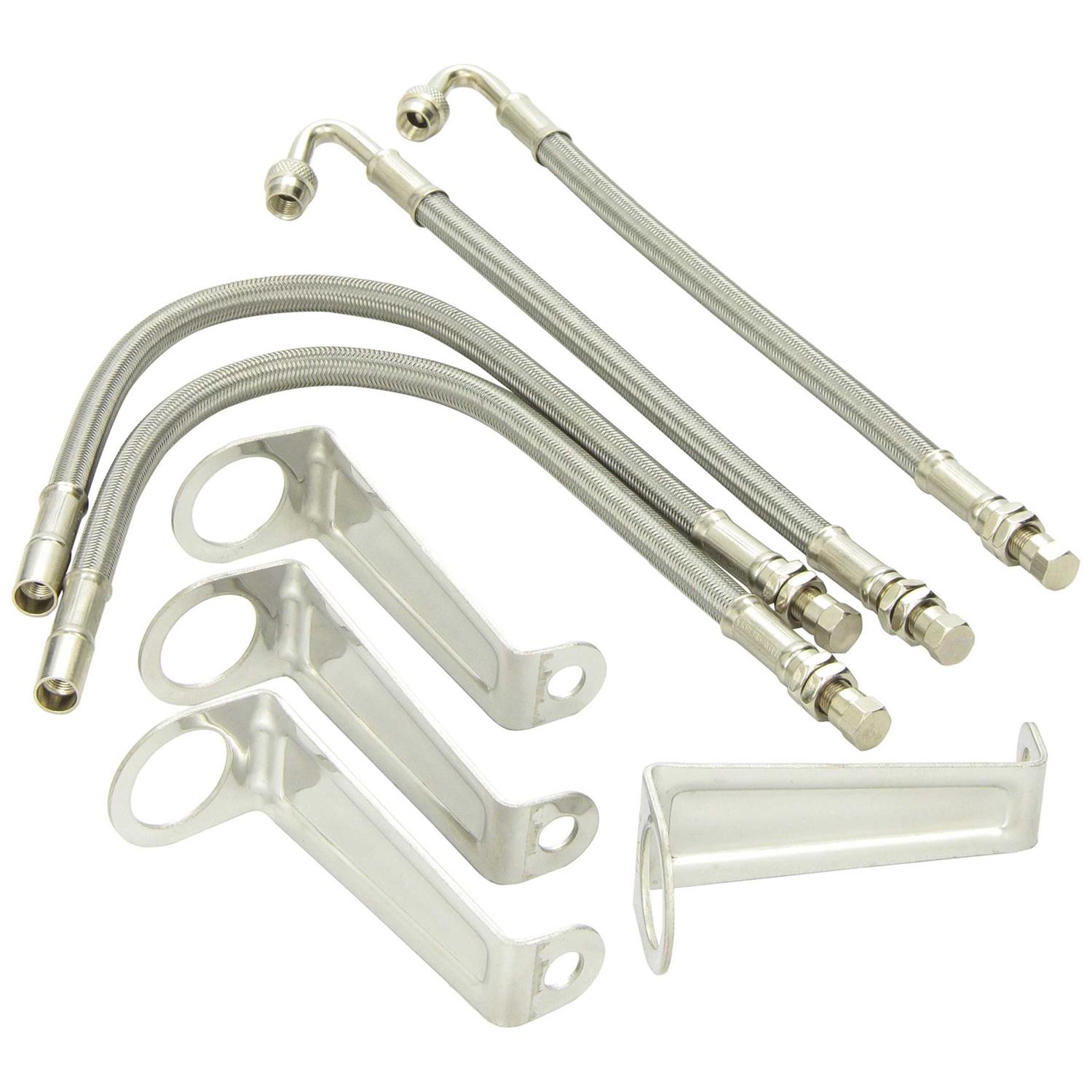 This 8-pc. Phoenix USA Airmax Air Inflation Kit makes air inflation of dual wheels a breeze. Air Max extensions mount using Phoenix USA Inc. DOT Liner hardware. Outer extensions have a 120 degree bend. Dimensions L x W x H in. 10 1/2 x 4 1/4 x 1 13/32, Finish Type Stainless, Material Type Stainless steel, Product Type Inflation kit. Kit includes 4 brackets, 2 inner extensions and 2 outer extensions Air Max braided stainless valve stem extensions are designed to fit inner and outer rear wheels Braided stainless steel construction is built to last Fits Phoenix USA Wheel Simulator Set Item# 76051 sold separately Model Number: AML1. Age Group: adult.