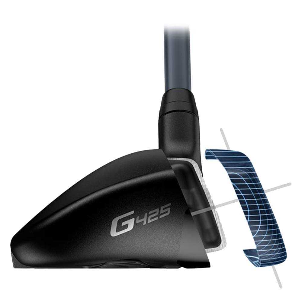 In the G425 Hybrid has Facewrap Technology and Spinsistency combine to deliver more distance and spin predictability while offering numerous options to ensure proper gapping throughout a golfer’s bag. With the Facewrap design, a thin, high strength maraging steel face extends into the crown and sole to provide increased flexing for faster ball speeds that result in greater distance and high launching shots. To bring more consistent spin performance, the faces of the fairway woods are engineered with a complex face curvature that modifies the roll profile, low on the face where the loft decreases approximately 2.5* to normalize spin and increase ball speed for more distance. Both player and PING Man robot testing revealed improved distance results from Spinsistency, specifically low on the face, the most common miss-hit for fairway woods. For high MOI, a tungsten sole weight strategically positioned in each club increases the MOI in the stainless steel heads for added forgiveness. On the crown, a new 3-dot alignment feature provides golfers a visual cue to address the ball to best match their eye. For adjustability, Trajectory Tuning 2.0 in the G425 hybrid utilize a new lightweight, aerodynamic hosel sleeve that provides eight positions for influencing ball flight through loft (±1.5°) and lie adjustments, including up to 3° flatter than standard.