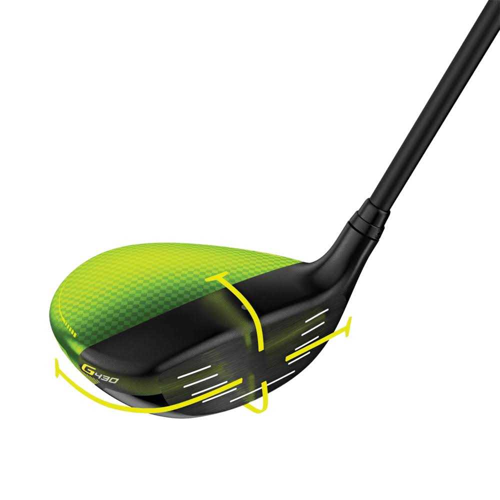 Ping G430 MAX Fairway Wood You can size up long approach shots with 100% confidence that your Ping G430 fairway will get you home. Ping are introducing Carbonfly Wrap technology to deliver more distance by positioning the CG closer to the force line to maximise ball speed, resulting in higher, longer carries. Carbonfly Wrap Carbonfly Wrap, an ultra-lightweight composite crown, wraps into the heel and toe sections of the skirt. Weight savings are reallocated to lower the CG and increase ball speed and MOI (forgiveness). The composite also plays a role in the pleasing sound. Facewrap Technology The variable-thickness, high-strength maraging steel face wraps into the sole and crown, and it’s thin to flex more, generating faster ball speed with higher launch for greater distance. Spinsistency A variable roll radius creates less loft low on the face to improve performance (especially on thin shots) by reducing spin, resulting in faster speeds that generate consistently longer results. Adjust Loft, Lie Trajectory Tuning 2.0 utilises a lightweight, aerodynamic hosel sleeve that provides eight positions to customise your trajectory for maximum distance and accuracy. Trajectory Tuning Chart The lightweight, 8-position hosel enables adjustments for loft (±1.5°) and lie (up to 3° flatter than std.) to further dial in your ball flight for the best results. PING-Engineered Shafts The PING Alta CB Black offers mid-high to high launch, the PING Tour 2.0 Chrome mid launch, and the PING Tour 2.0 Black promotes the lowest trajectory.