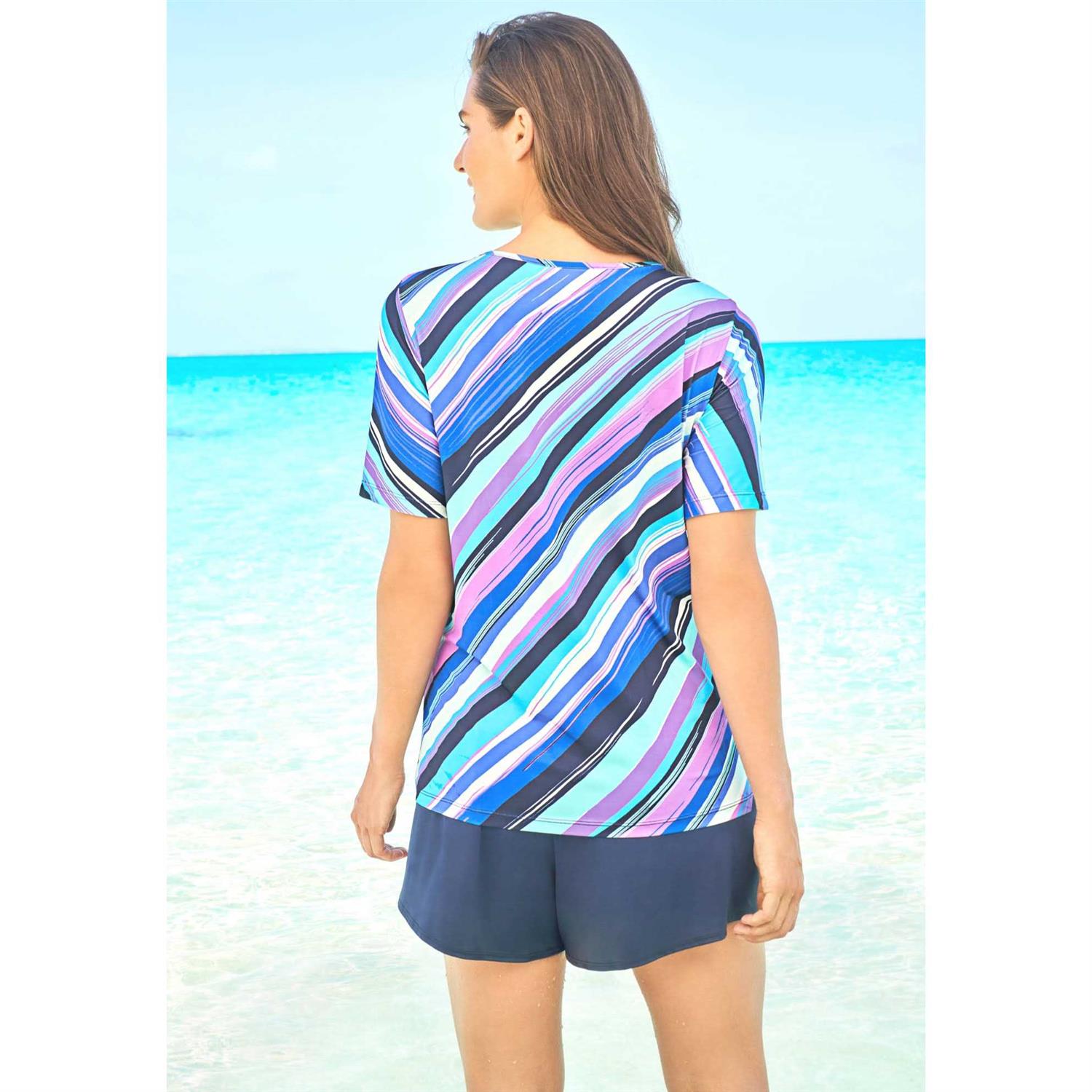 Protect from too much sun with this swim-friendly crewneck tee in colorfast, chlorine-resistant fabric. Wear over your favorite tankini or swim top. Unlined. Swim Solution: UPF 50+ Sun ProtectionSwim Solution: Chlorine ResistantFor added support try our Scoop Neck Swim Bra26″ lengthNylon/spandexHand washImported | Plus Size Women’s The Swim Tee by Swim 365 in Mediterranean Floral (Size 22/24)